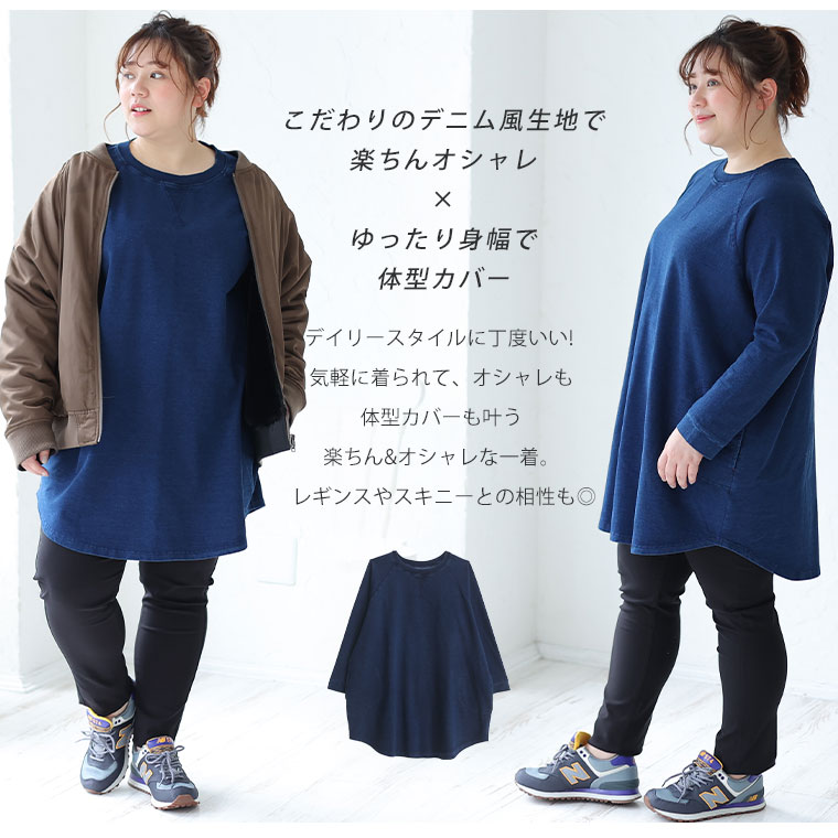 ワンピ デザインワンピ LL 3L 4L 春 春物 春服 ぽっちゃり ゆったり かわいい おしゃれ カジュアル ナチュラル プラスサイズ きれいめ デニム デニムワンピース ガーリー リブ付き 長袖 ワンピース