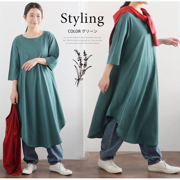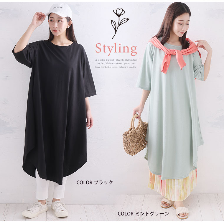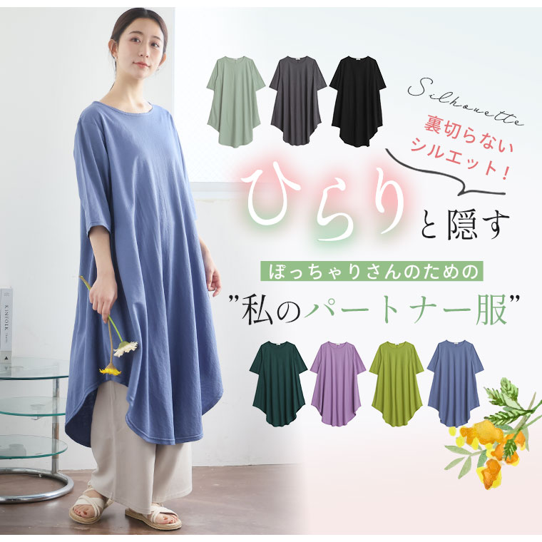 ぽっちゃりさんの為の体型上品カバー 花びらチュニックワンピース
