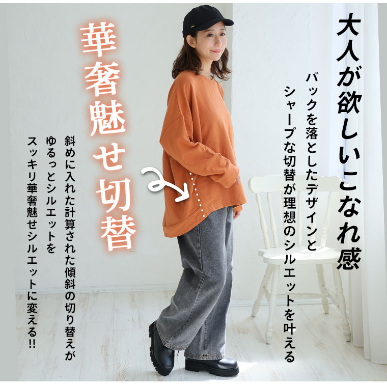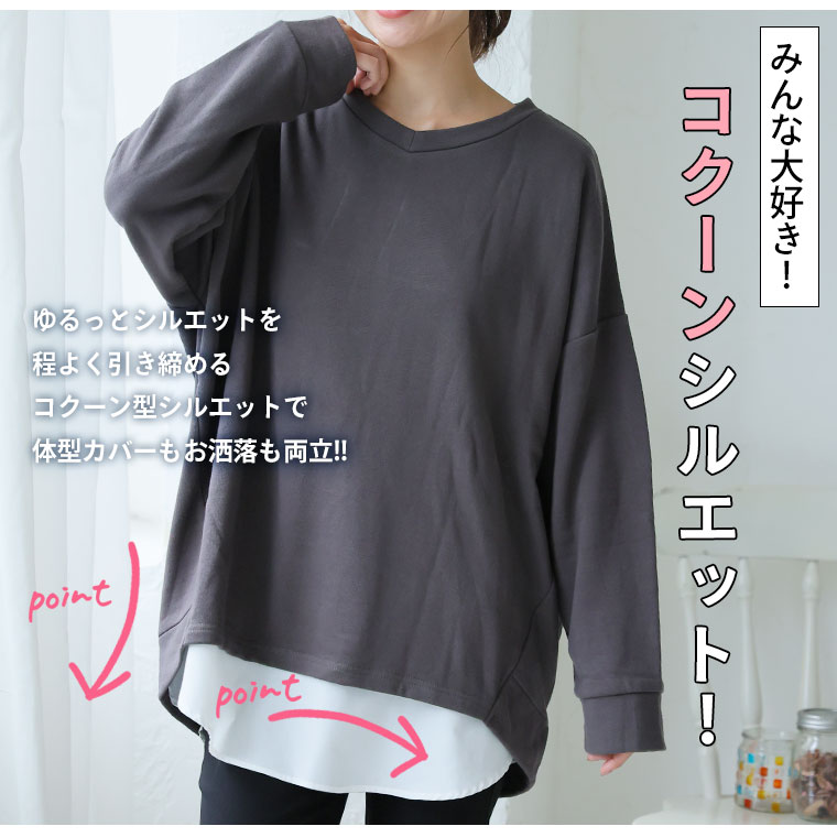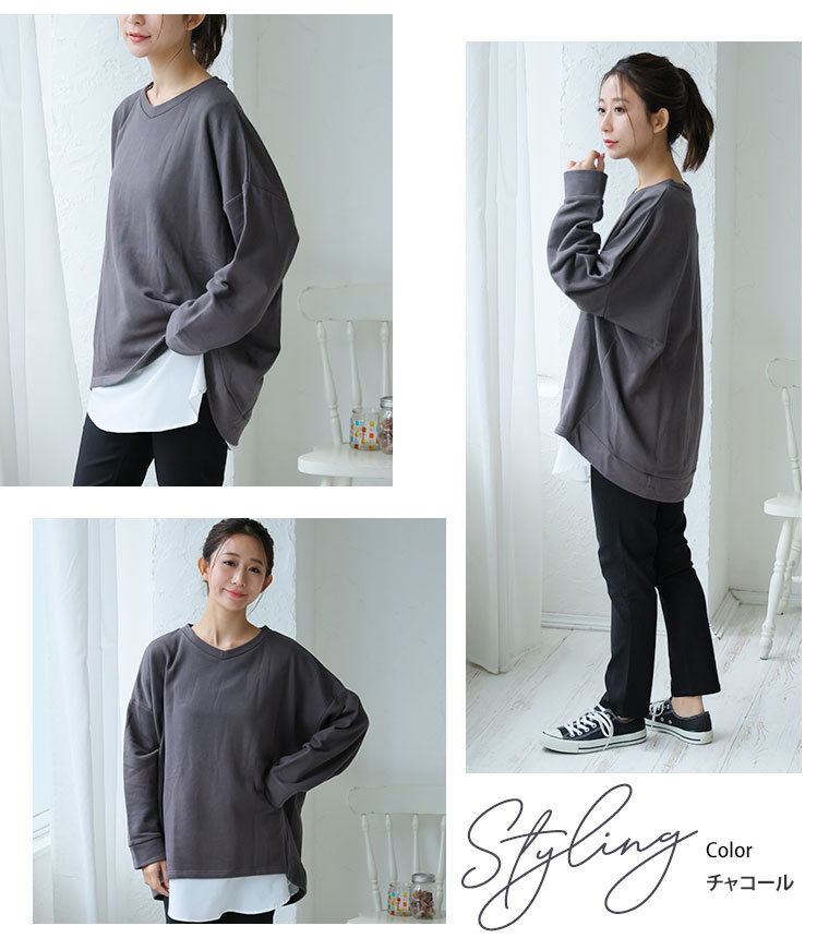 4. 大きいサイズ 肌触りの虜!! やみつきソフトタッチ裏毛 こなれシルエット ゆるVトレーナー チュニック