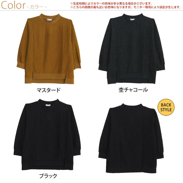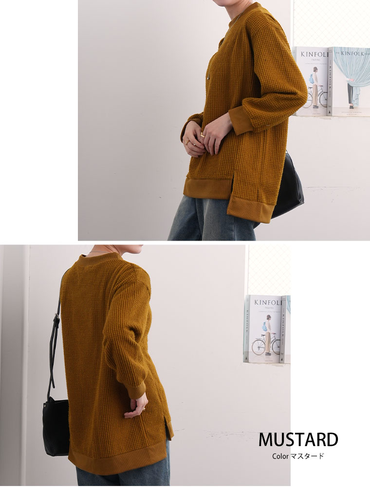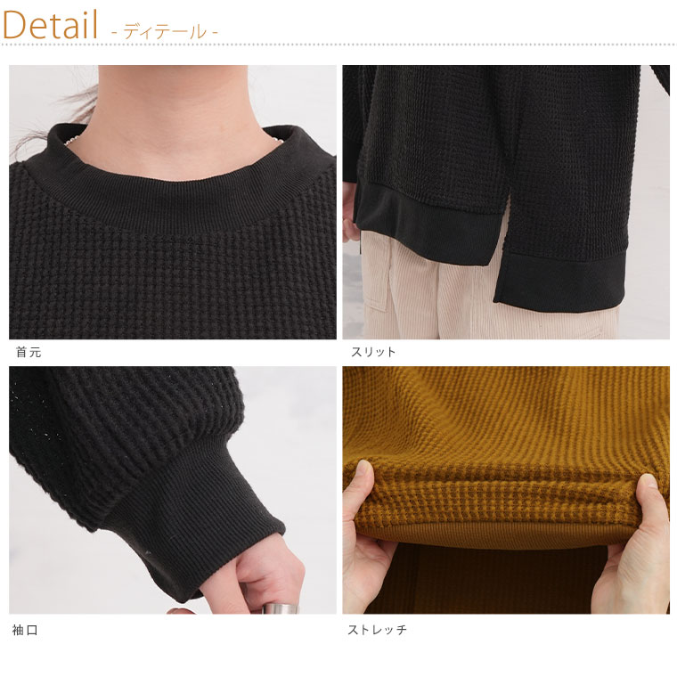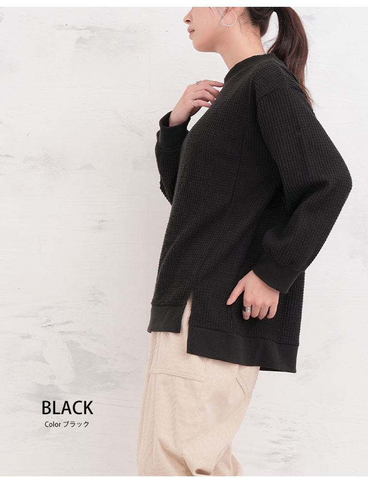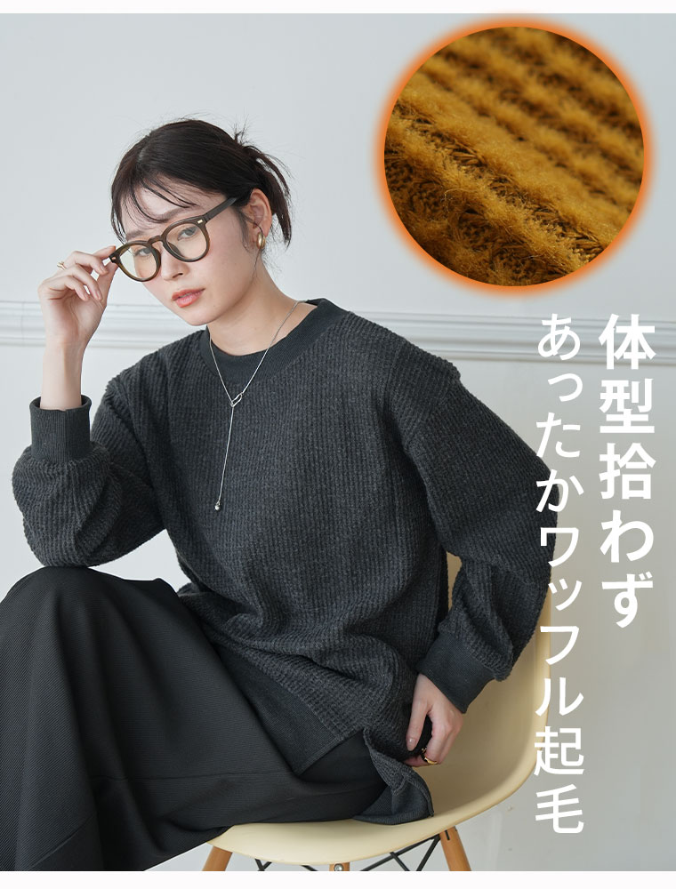 ぽかぽか起毛で暖かい ワッフル モックネック チュニック