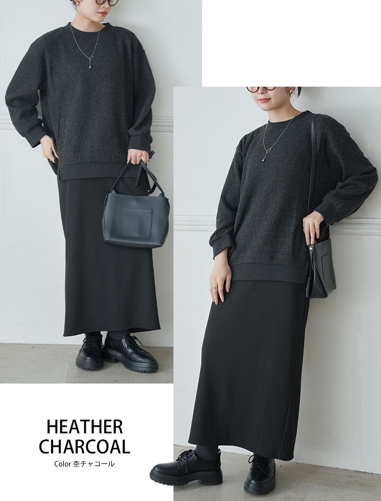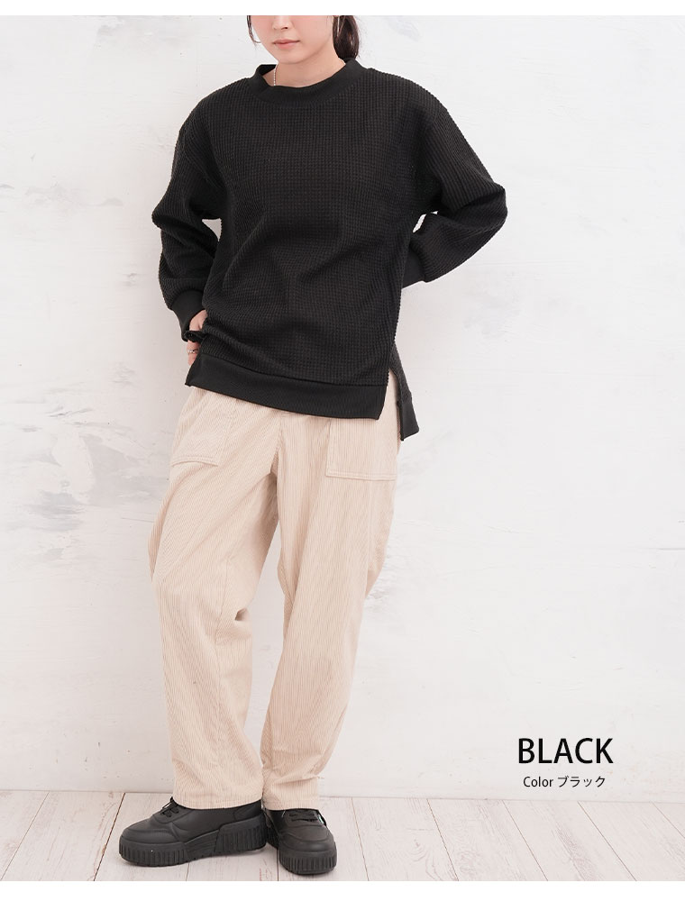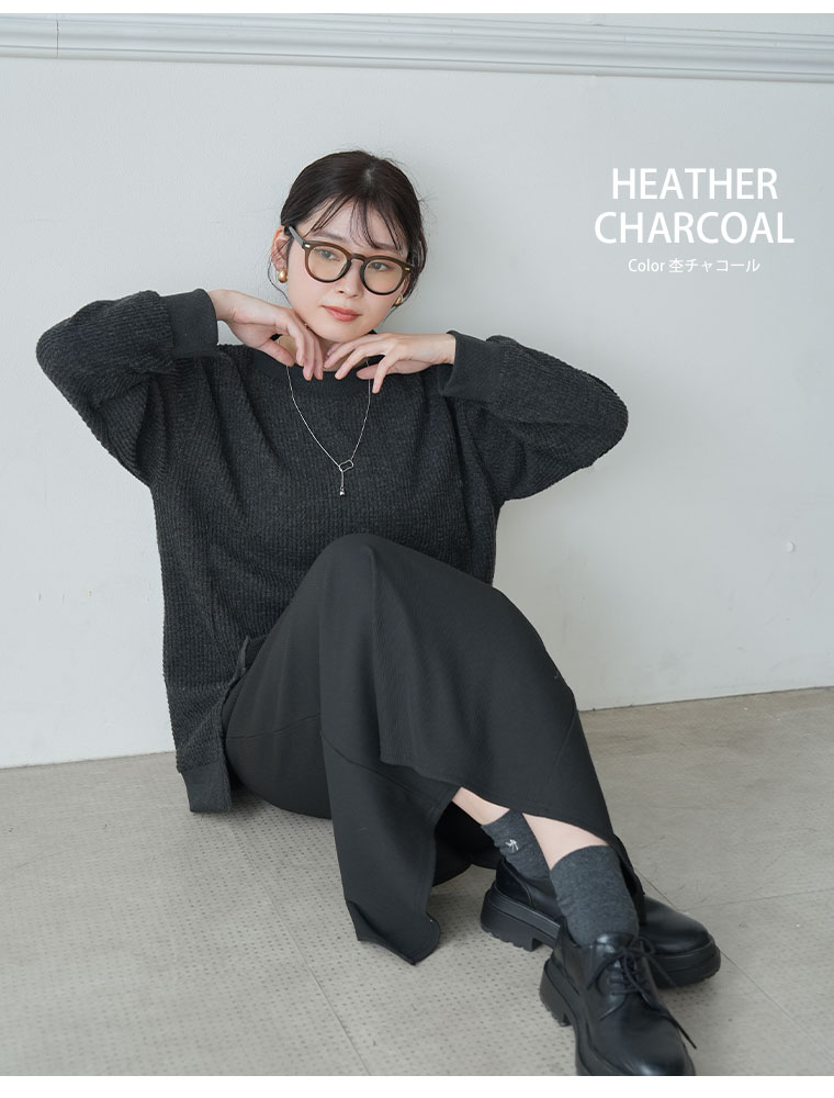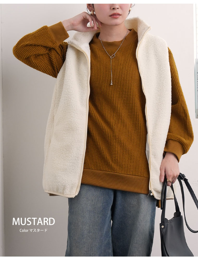ぽかぽか起毛で暖かい ワッフル モックネック チュニック