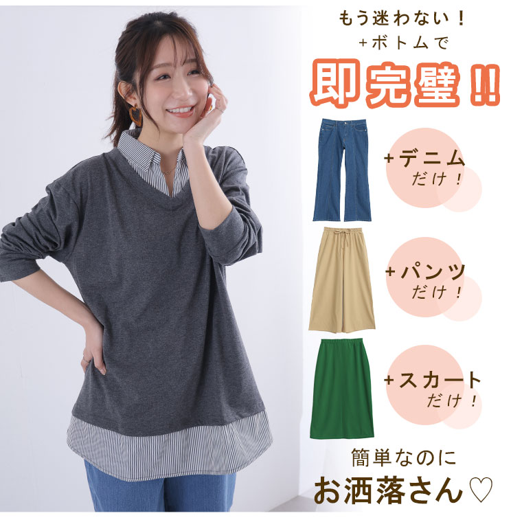 +ボトム でコーデ完成!重ね着風トップス