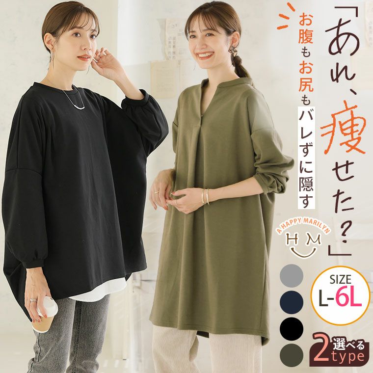 他の画像を見る トップス チュニック 裏毛 スウェット LL 3L 4L 5L 6L 長袖 七分袖 冬 冬物 冬服 ぽっちゃり ゆったり プラスサイズ かわいい タックでお腹・お尻スッキリ 選べるチュニック | 大きいサイズの通販ならハッピーマリリン 価格 ¥ 2,790 税込 4.00 在庫切れ お気に入りに登録する