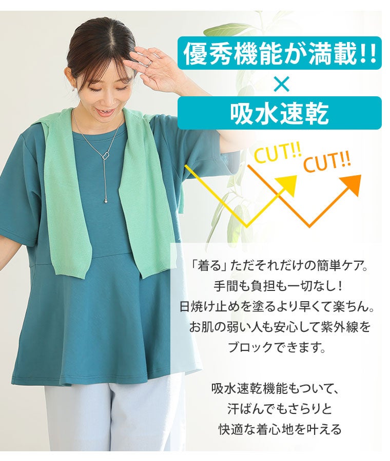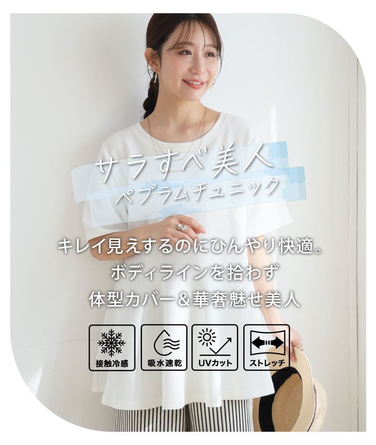 他の画像を見る トップス チュニック UV対策 吸水速乾 接触冷感 LL 3L 4L 5L 6L 半袖 夏 夏物 夏服 夏用 ぽっちゃり ゆったり プラスサイズ カジュアル 【新作◆4月11日販売】 スゴ! 裏技 さらすべ美人 ペプラム チュニック | 大きいサイズの通販ならハッピーマリリン NEW 価格 ¥ 2,990 税込 お気に入りに登録する