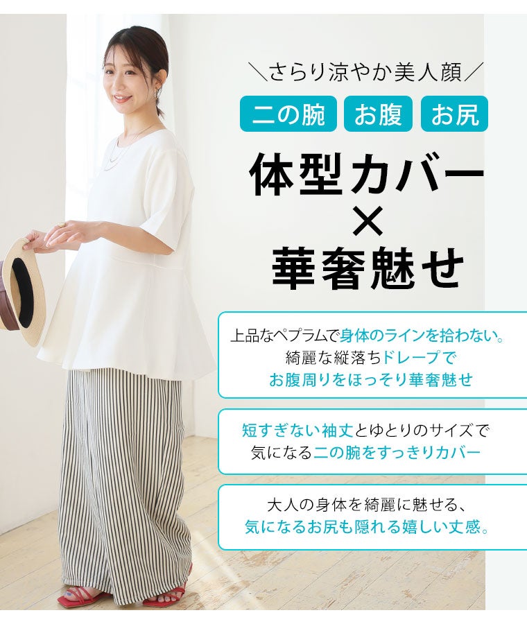 他の画像を見る カットソー プルオーバー LL 3L 4L 5L 6L 7L 8L 五分袖 六分袖 夏 夏物 夏服 夏用 ぽっちゃり ゆったり プラスサイズ かわいい uv 接触冷感 二の腕カバー お腹 【ハッピーさらりん】 ウエスト切替え ペプラム トップス | 大きいサイズの通販ならハッピーマリリン HIT100 価格 ¥ 2,990 税込 4.40 お気に入りに登録する