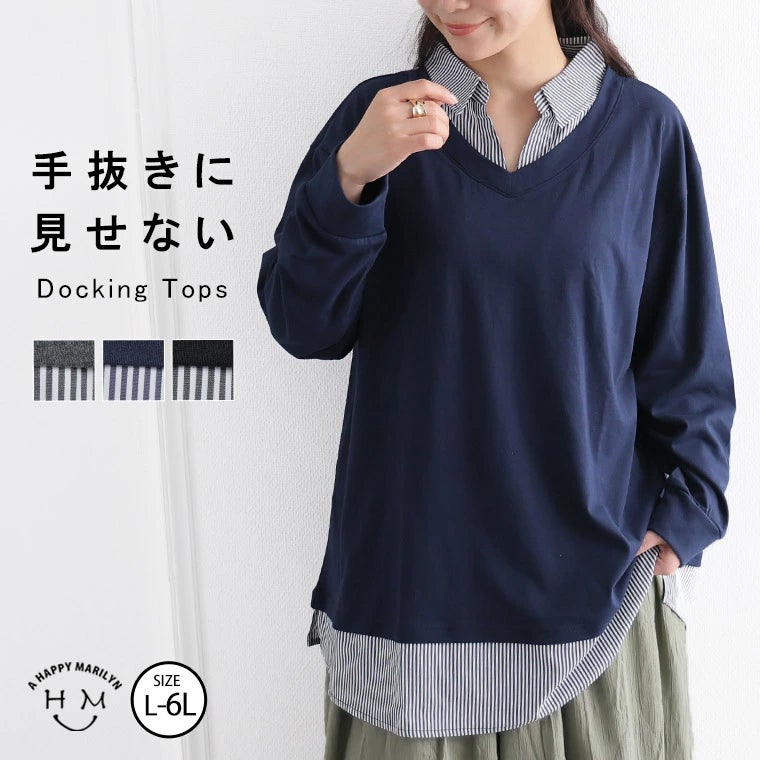 他の画像を見る トップス チュニック LL 3L 4L 5L 6L 長袖 夏 夏物 夏服 夏用 春 秋 ぽっちゃり ゆったり プラスサイズ お腹 カジュアル レイヤード風 ドッキング 時短 コスパ お腹 お尻 【新作◆4月8日販売】 襟布帛使い フェイク チュニック | 大きいサイズの通販ならハッピーマリリン NEW 価格 ¥ 2,990 税込 お気に入りに登録する