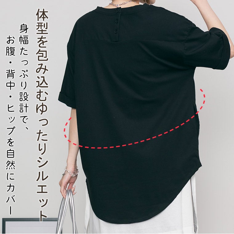 他の画像を見る トップス 無地 5分袖 ハーフスリーブ カットソー LL 3L 4L 5L 五分袖 春 秋 夏 夏物 夏服 夏用 ぽっちゃり ゆったり プラスサイズ カジュアル お腹 お尻 二の腕カバー 【取】 サイドスリット チュニック ワンピース | 大きいサイズの通販ならハッピーマリリン 価格 ¥ 2,690 税込 お気に入りに登録する