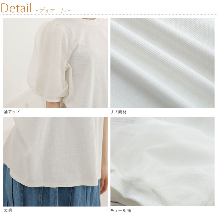 4. 大きいサイズ チュール重ね スリーブ カットソー