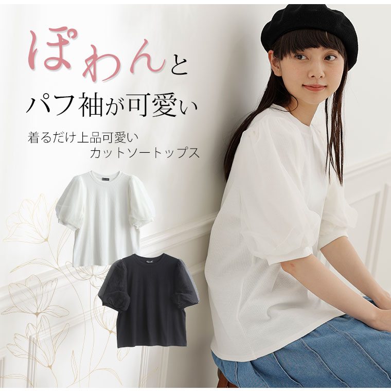 ぽわんとした形が可愛い チュール重ねパフスリーブ