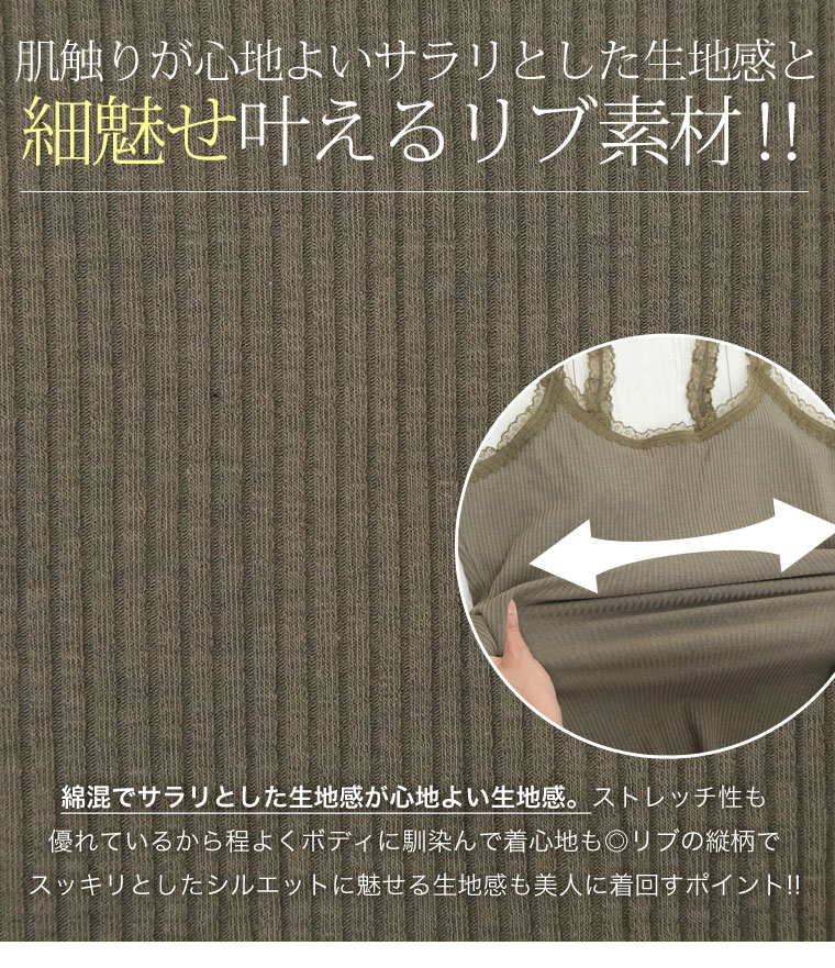 柔らかなリブ生地でストレスフリーな着心地に。1枚で楽ちんな着心地が魅力♪