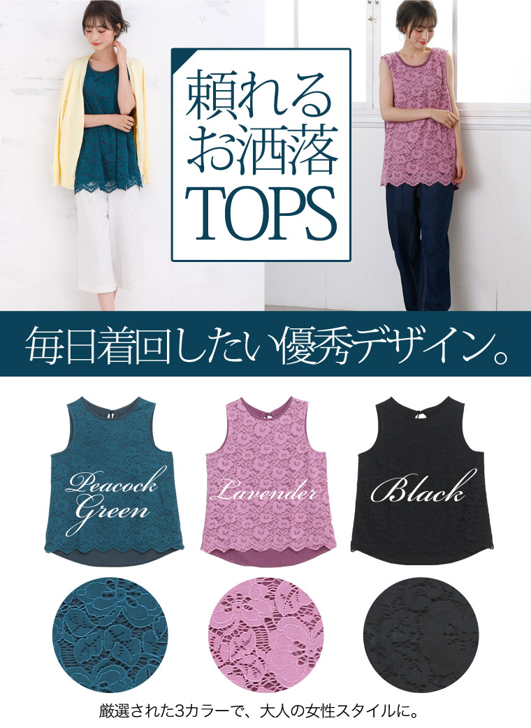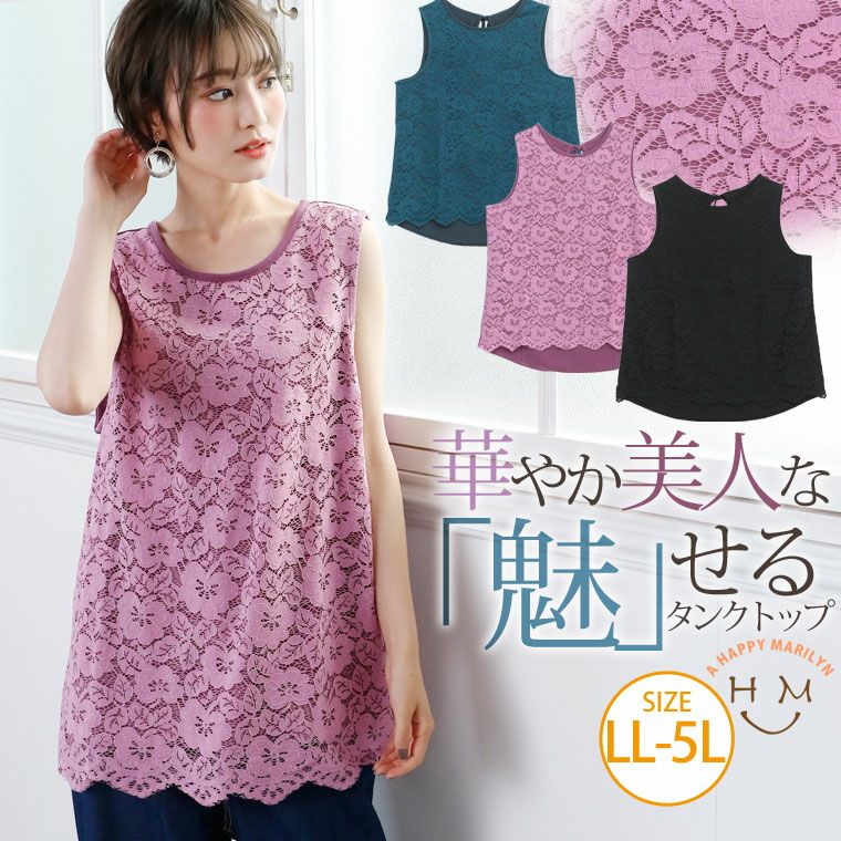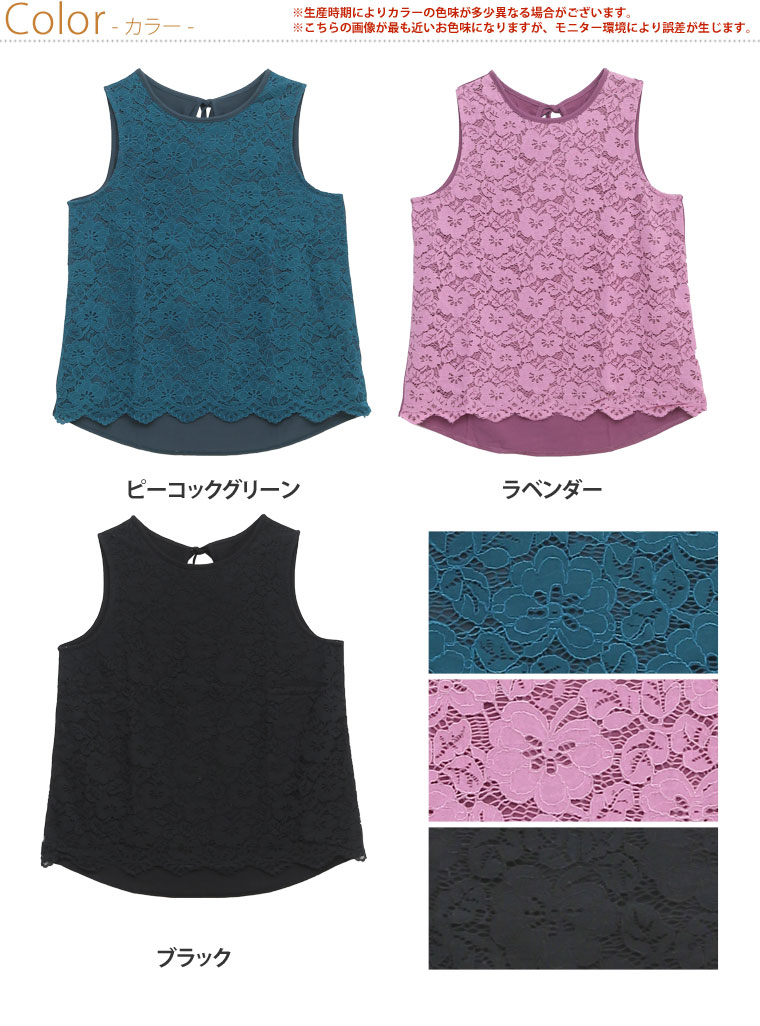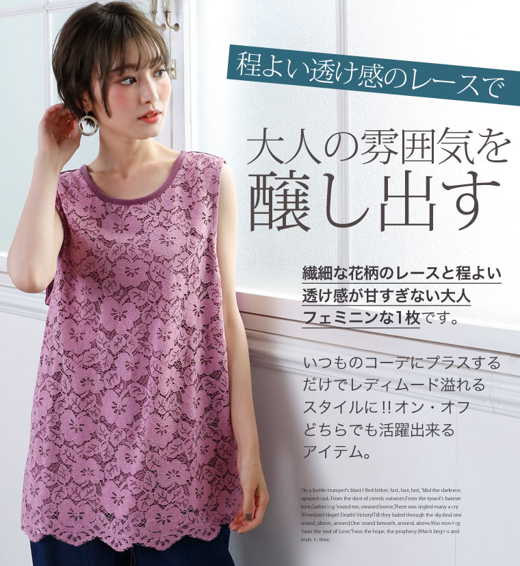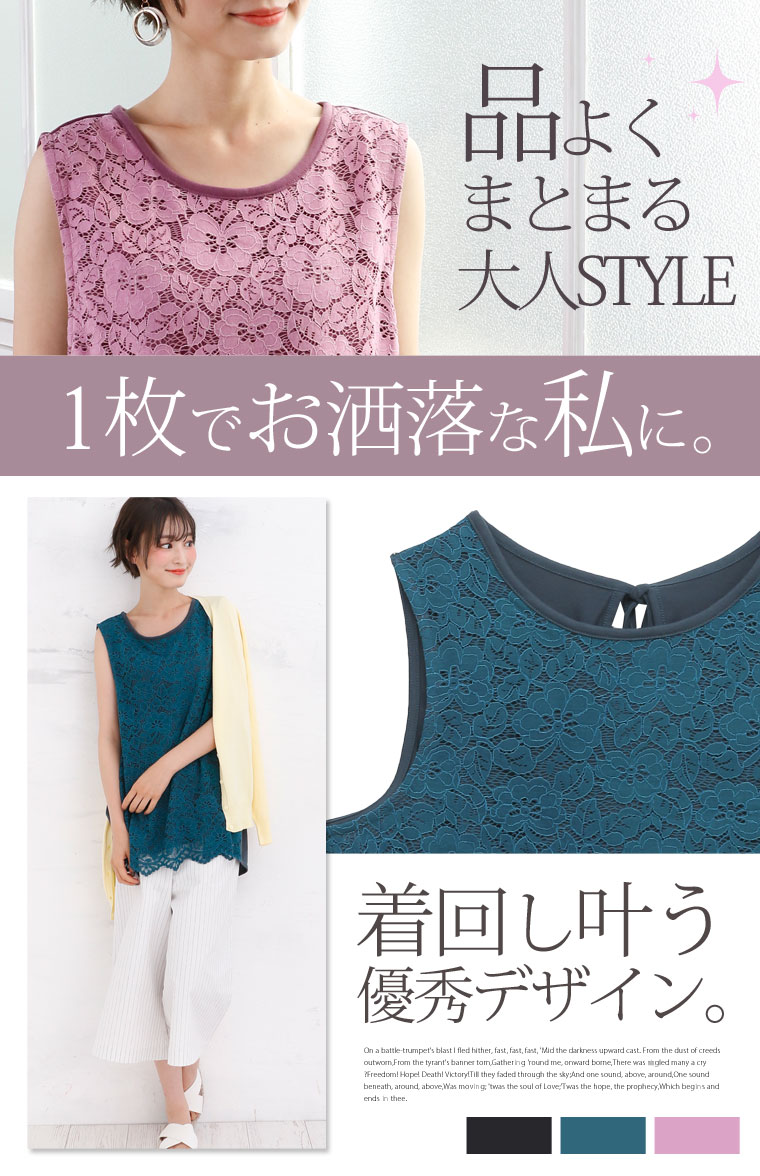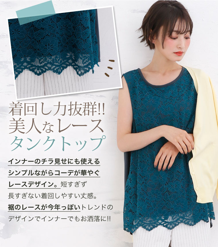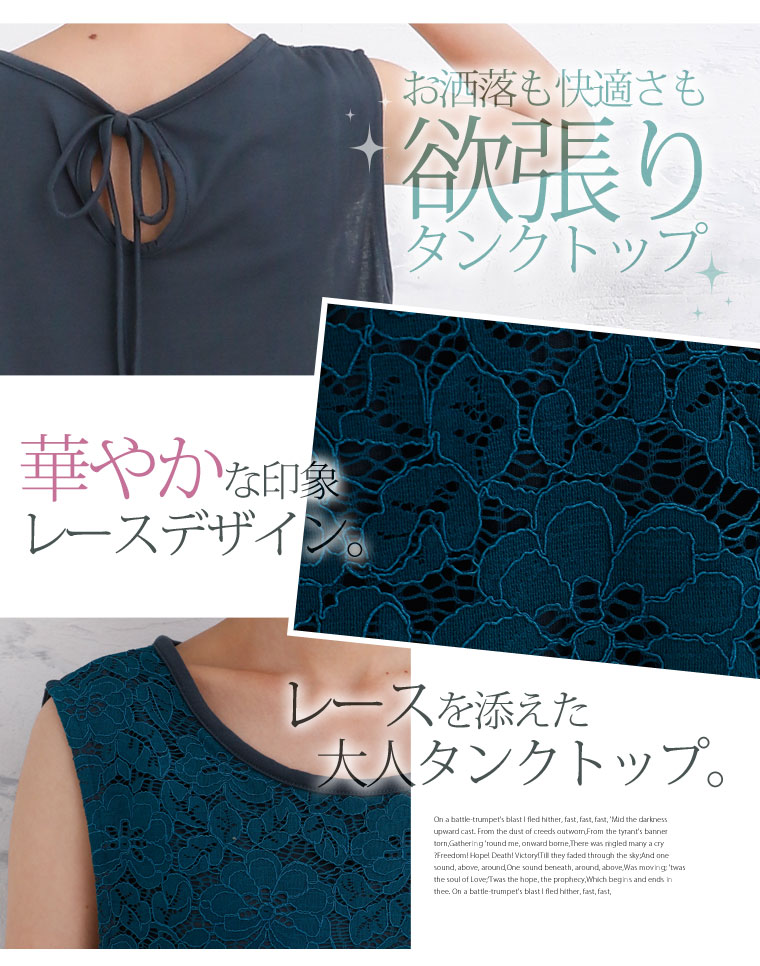 華やか美人なレースデザインで大人っぽく。バックリボンレースタンクトップ
