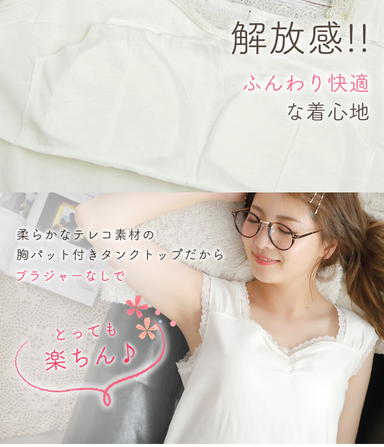 3. 大きいサイズ 胸パット付き テレコ タンクトップ