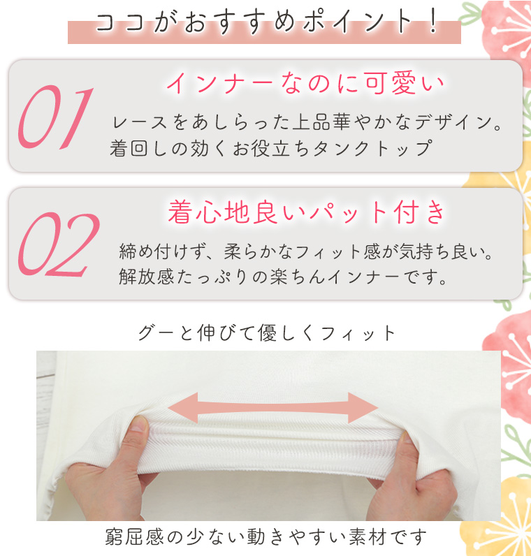トップス タンク インナー LL 3L 4L 5L 夏 夏物 夏服 夏用 ぽっちゃり ゆったり かわいい おしゃれ カジュアル ナチュラル 胸パット付き テレコ タンクトップ