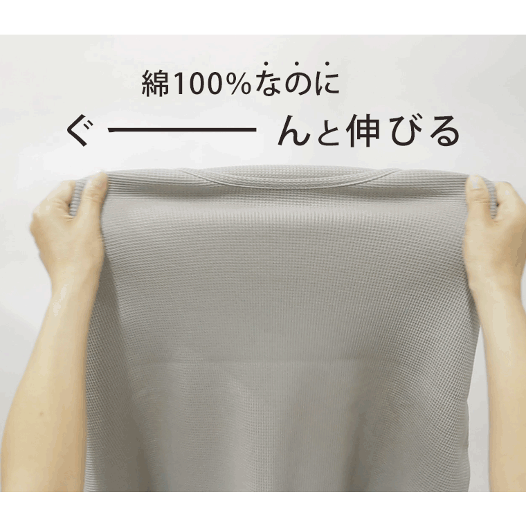 しっかりワッフル素材で体型を拾わず、オシャレに魅せて毎日着たくなる。