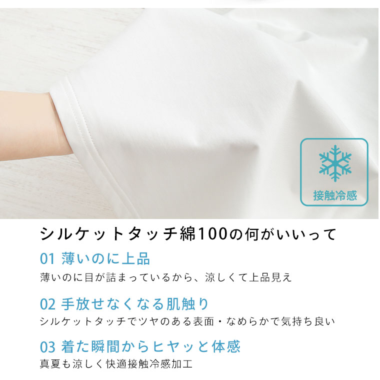 前屈みになっても安心!綿100素材の接触冷感スクエアカットソー
