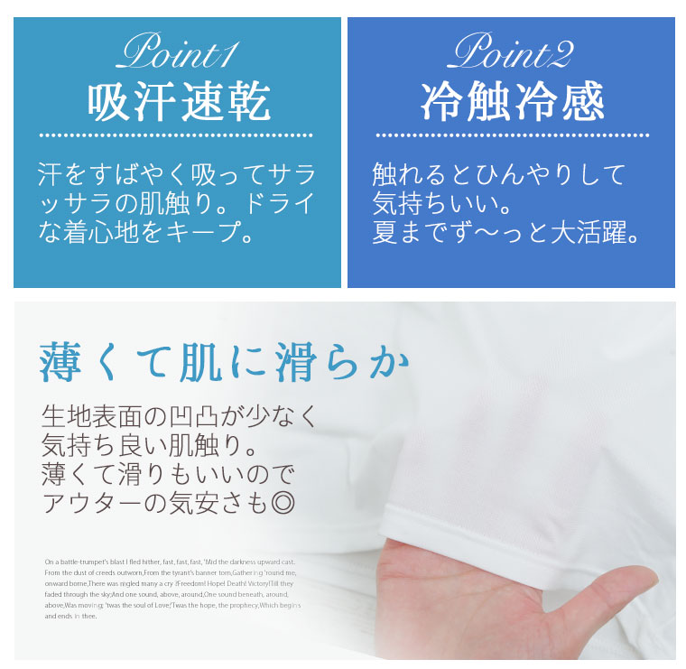 抗菌、吸汗速乾、接触冷感でこれからの季節活躍!