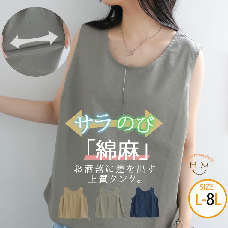 伸びる綿麻 裾ドロストタンクトップ