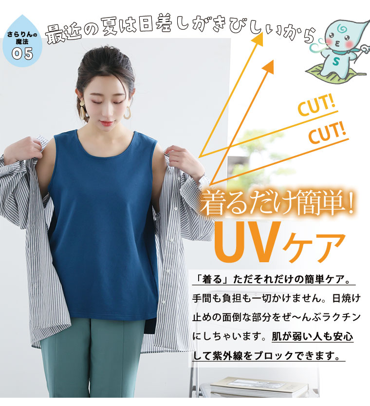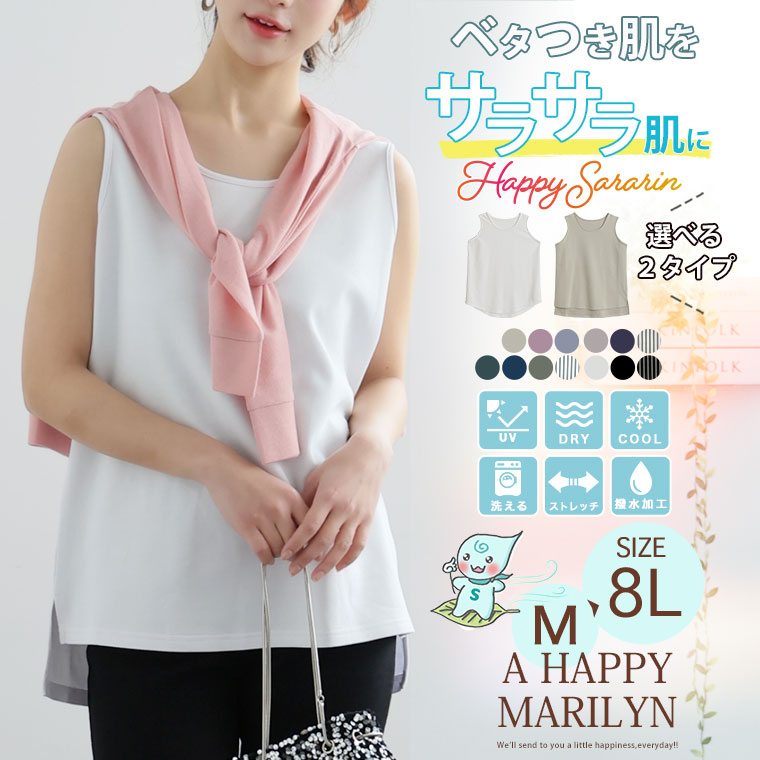 トップス LL 3L 4L 5L 6L 7L 8L 夏 夏物 夏服 夏用 ぽっちゃり ゆったり 吸水速乾 接触冷感 UV 新色・サイズ追加!!【ハッピーさらりん】 2typeから選べる タンクトップ