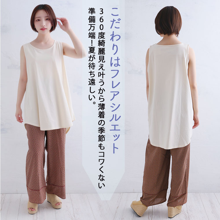 【さらっと吸汗 安心の綿100%! 消臭テープ付き】着回しフレアタンクトップ
