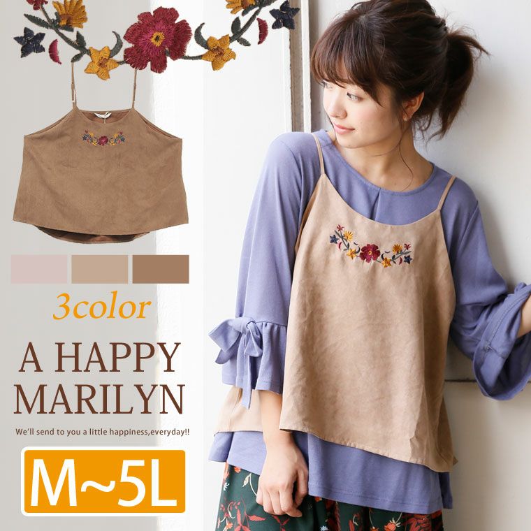 しっとりスエード生地で季節感たっぷりに。刺繍デザインオーバーキャミ