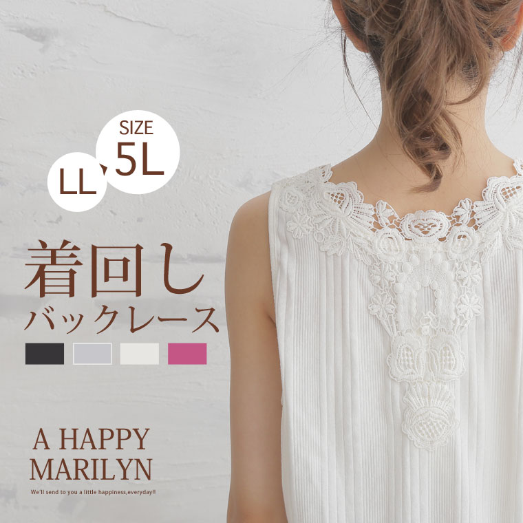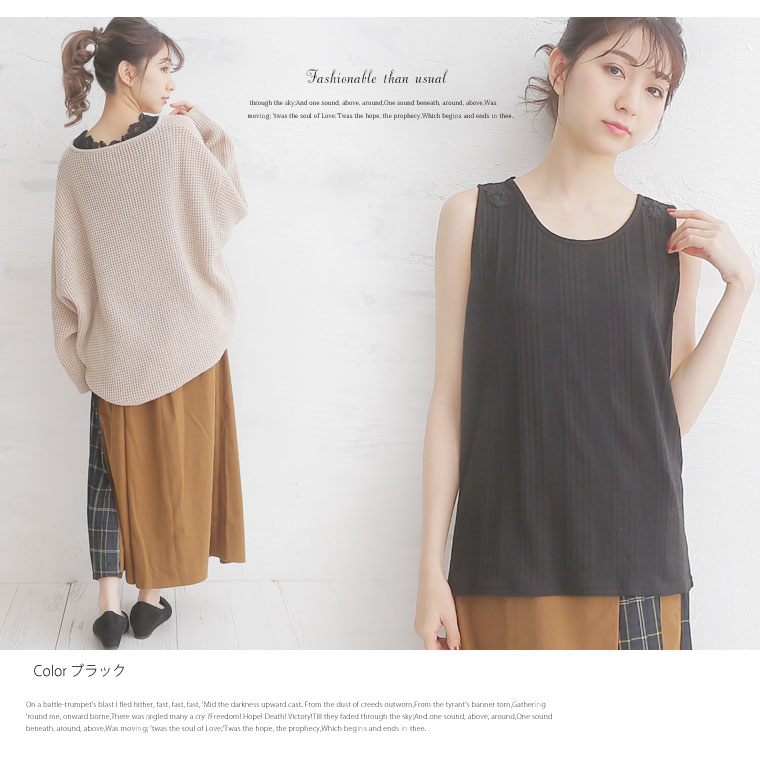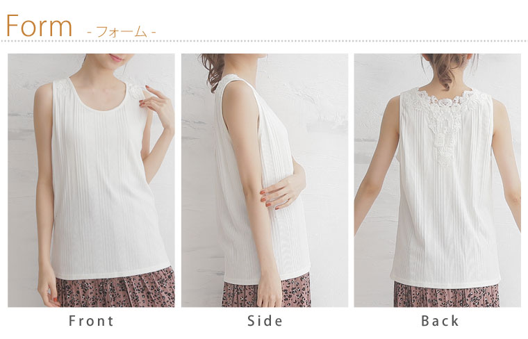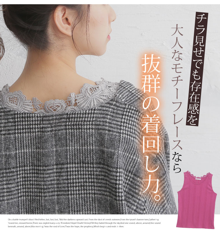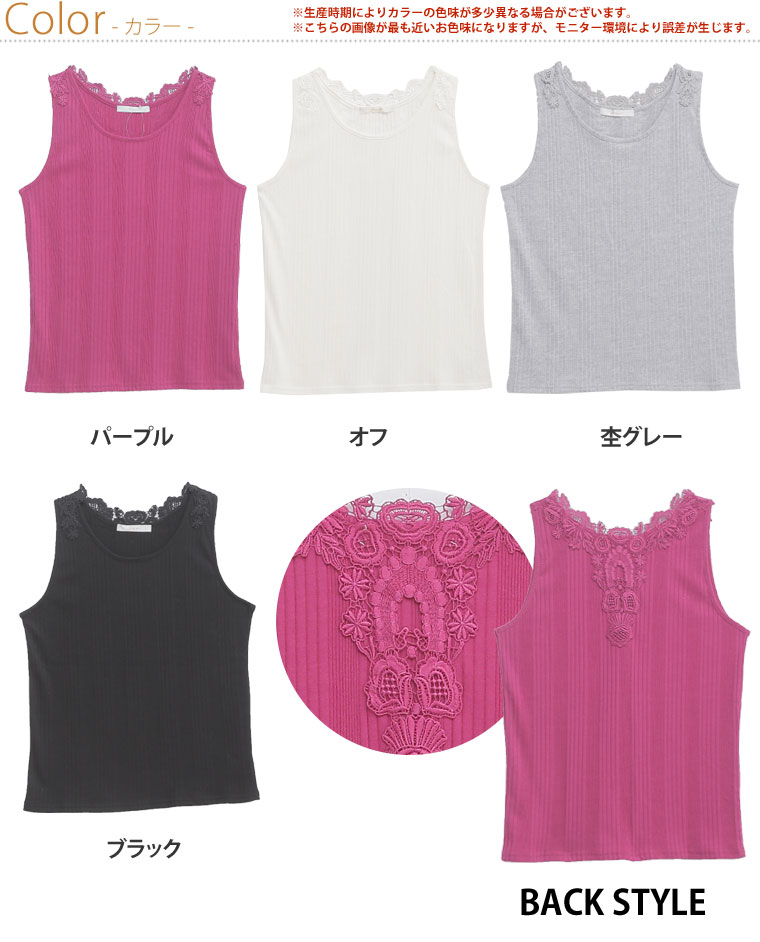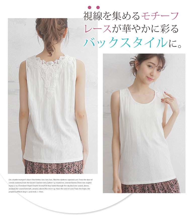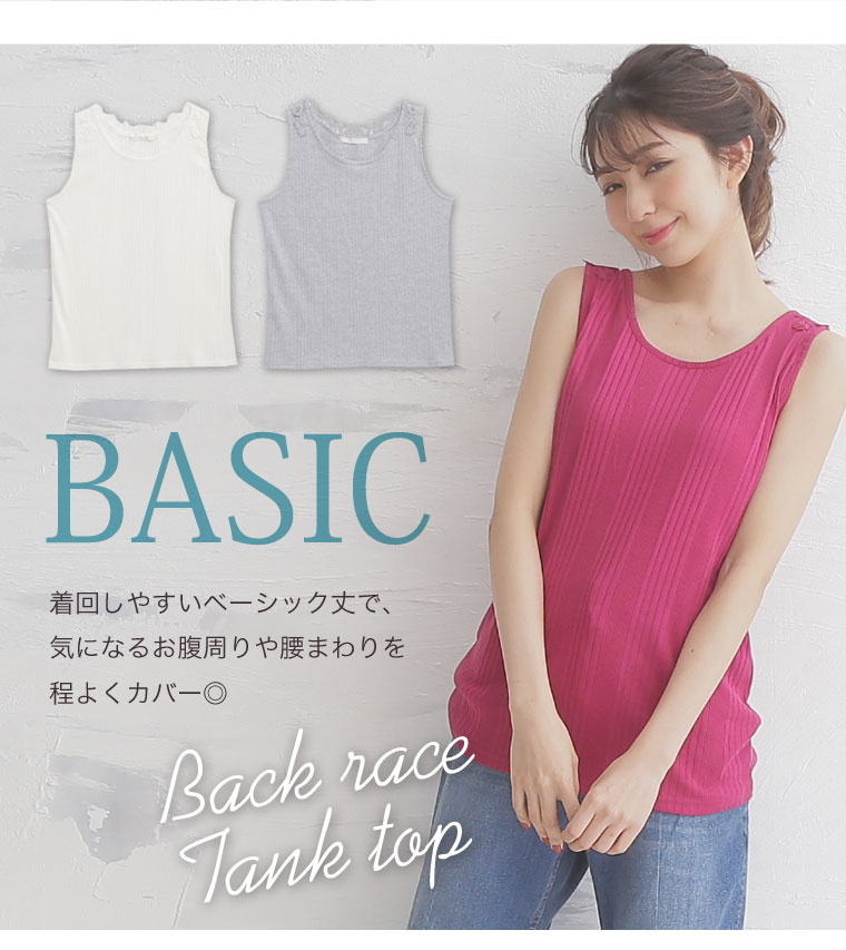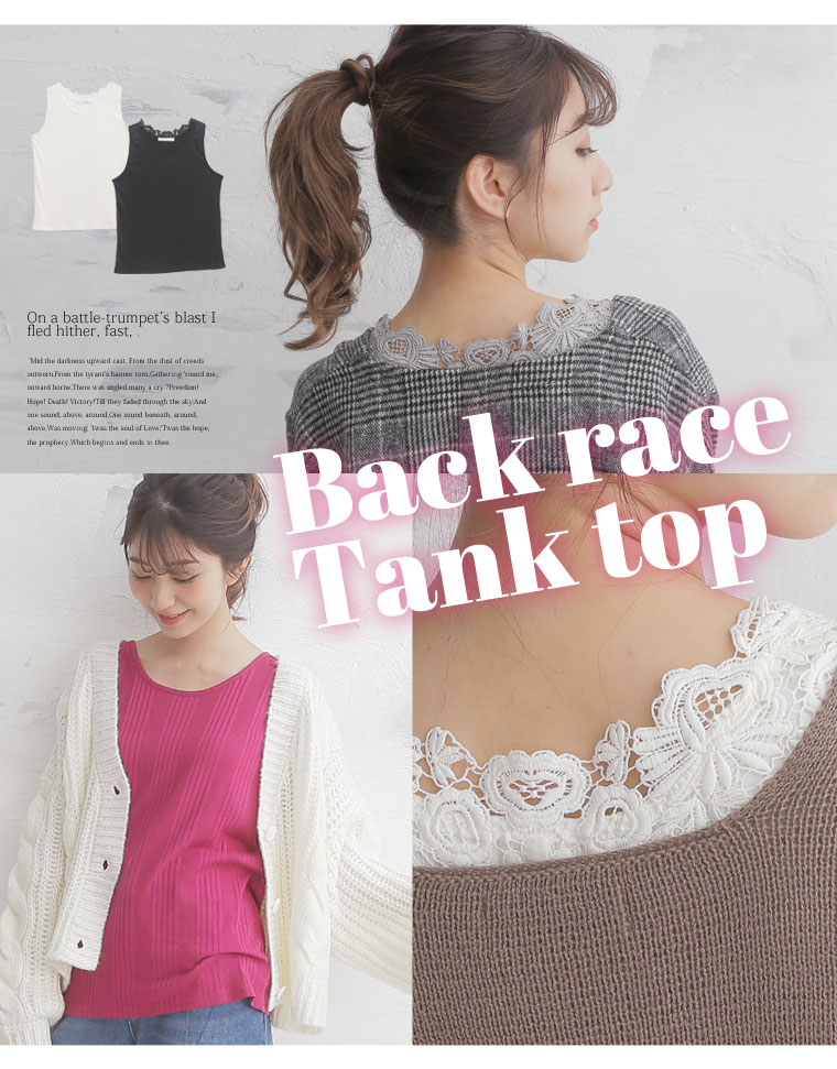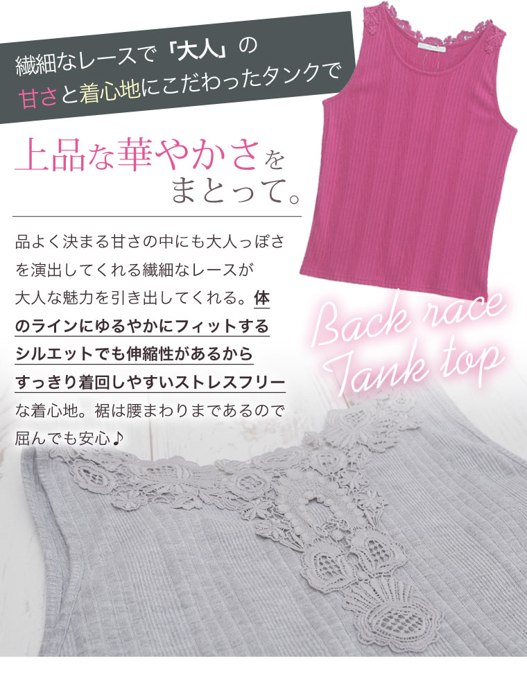 バックレースで華やかな印象に。レースランダムテレコタンクトップ
