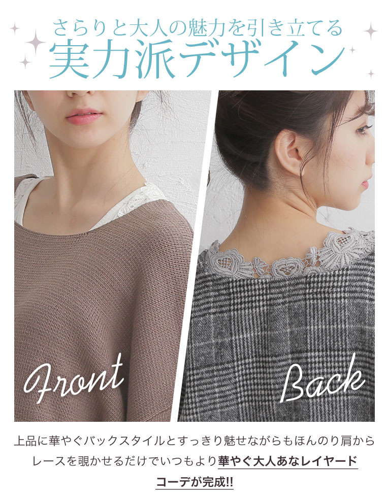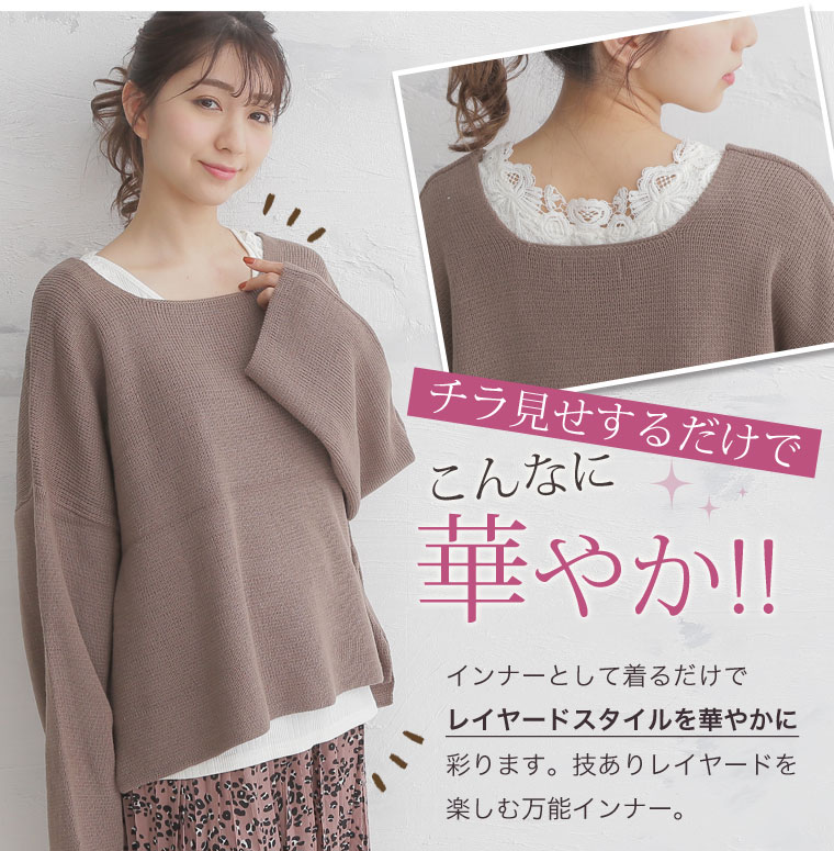 技ありレイヤードスタイルにおすすめ!!華やかなレースが女性らしさをUP!!