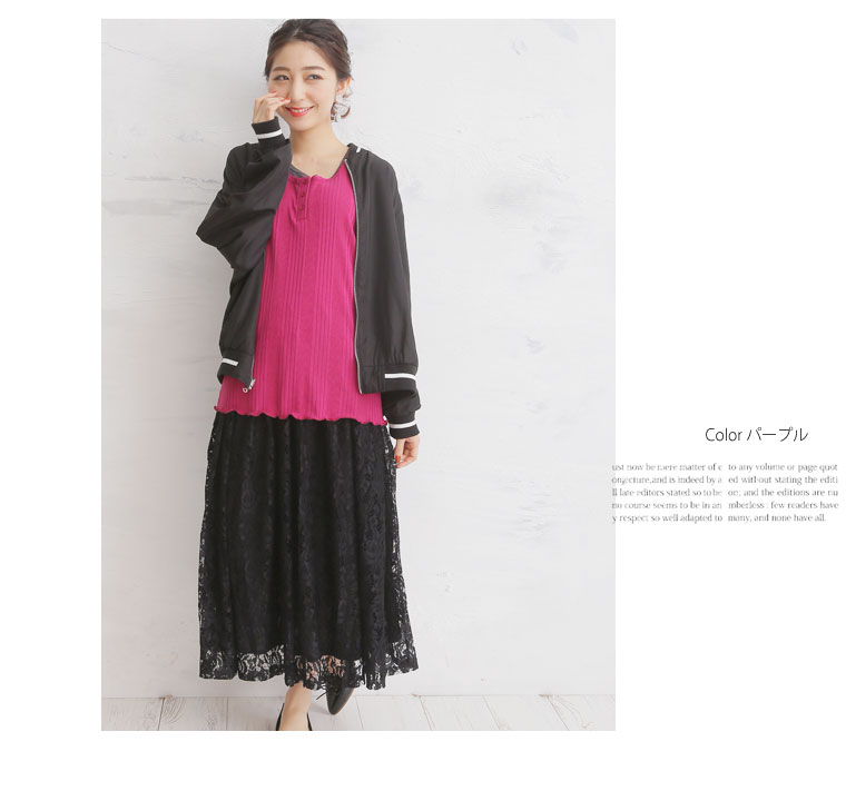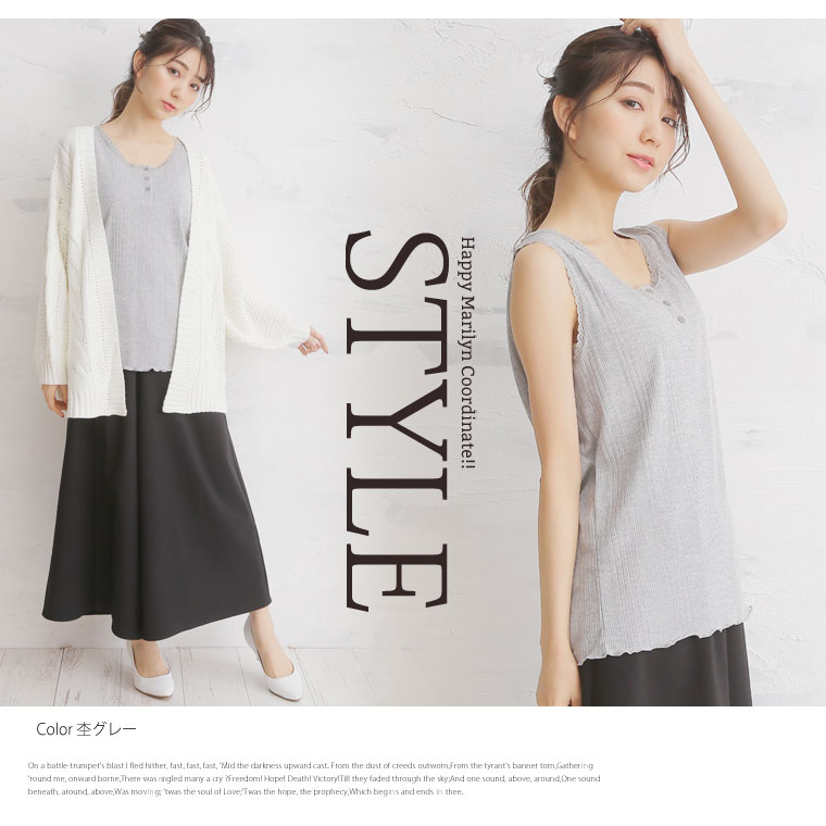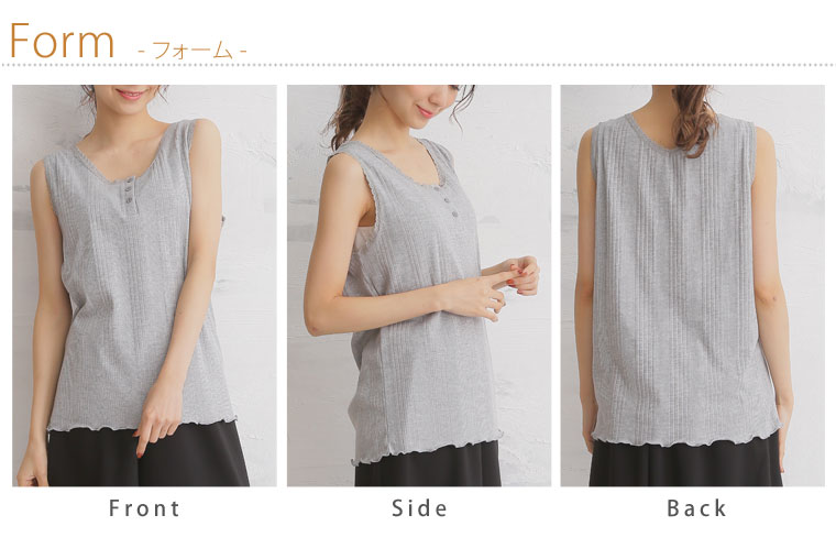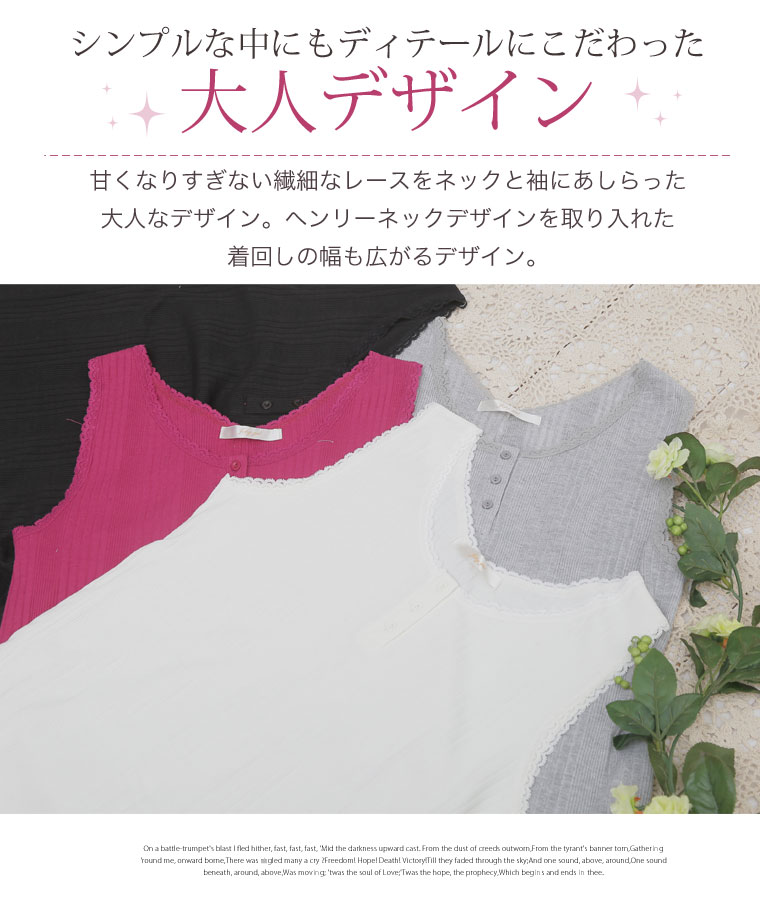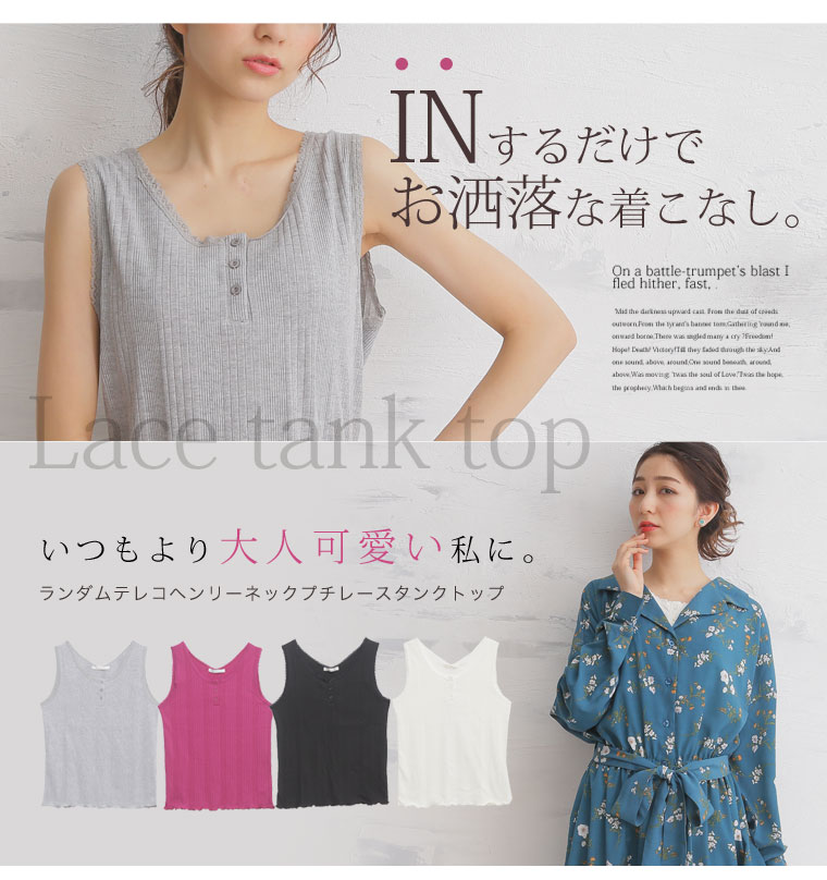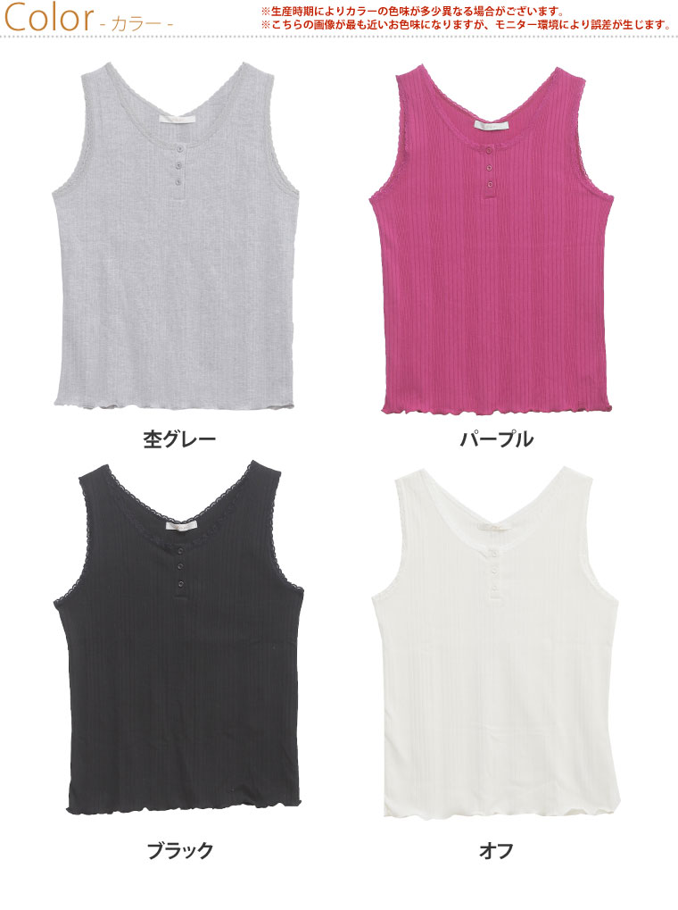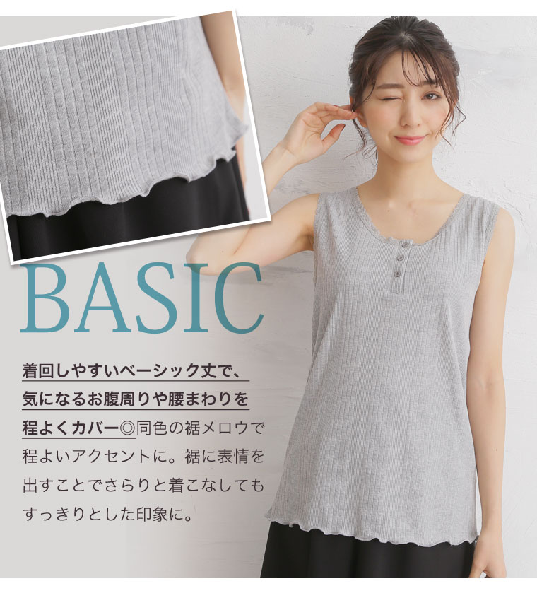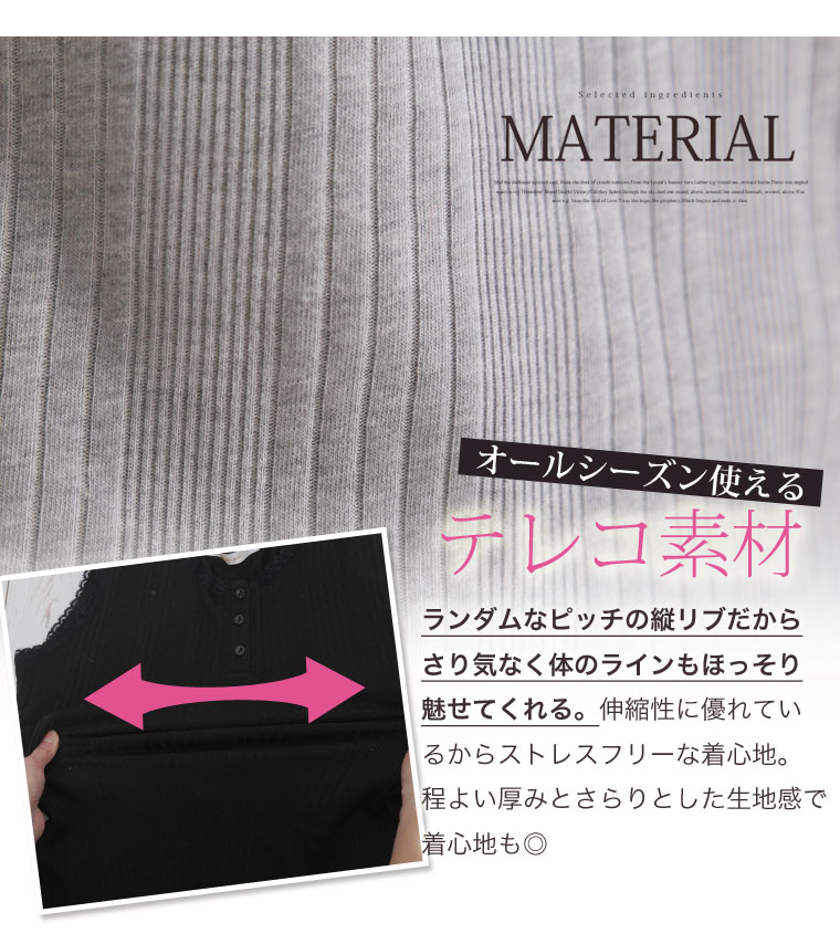 柔らかなテレコ素材で伸縮性◎裾メロウ仕様のネックレースタンクトップ