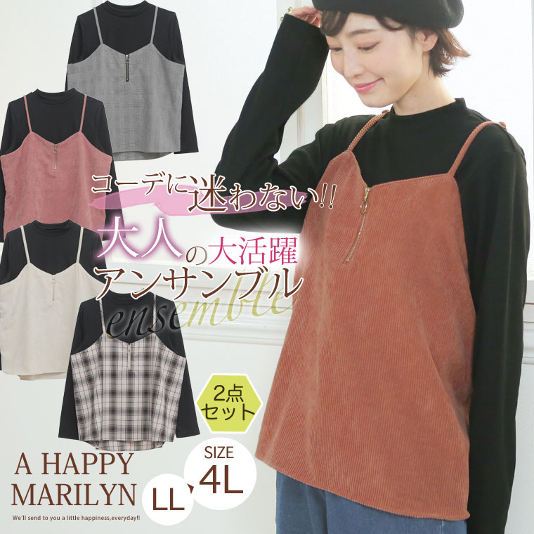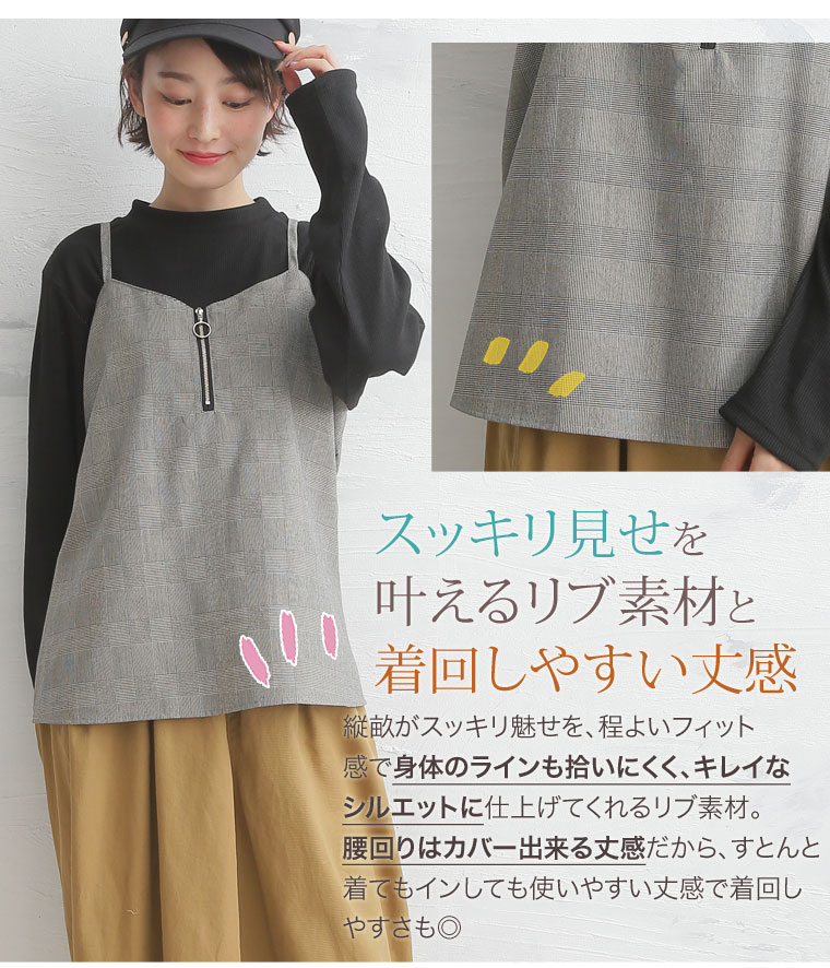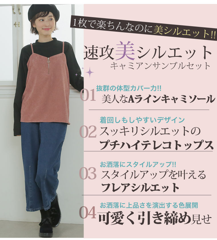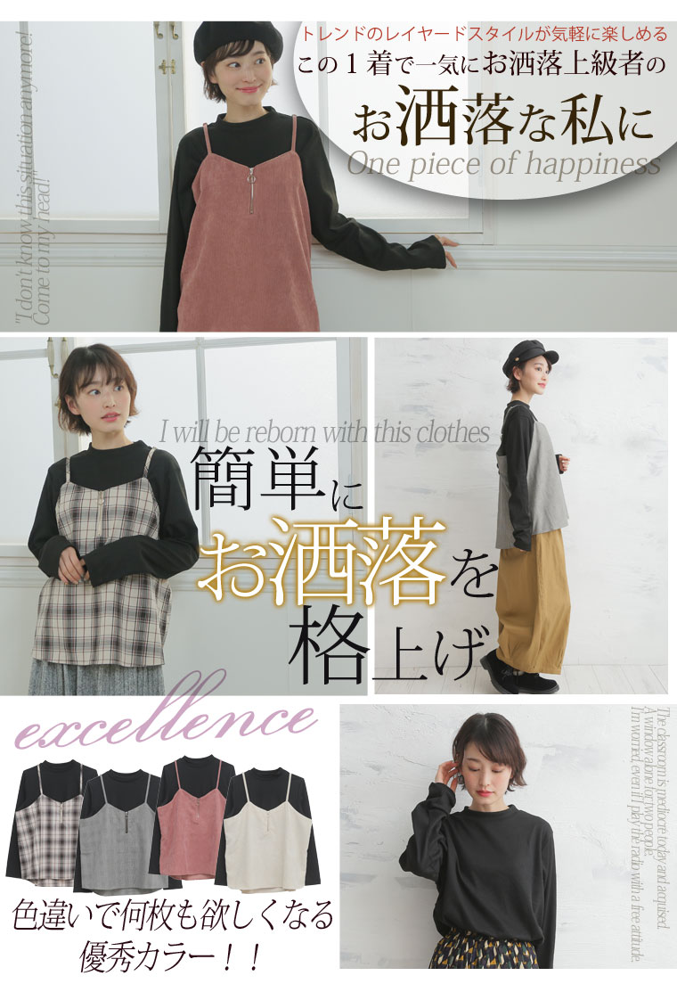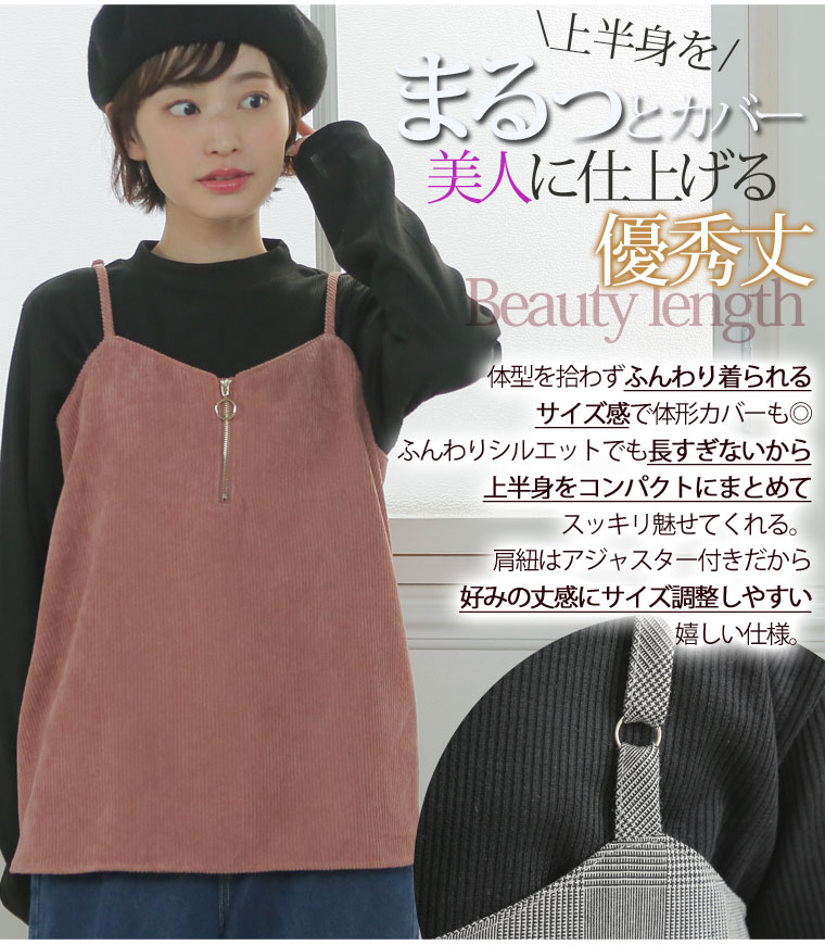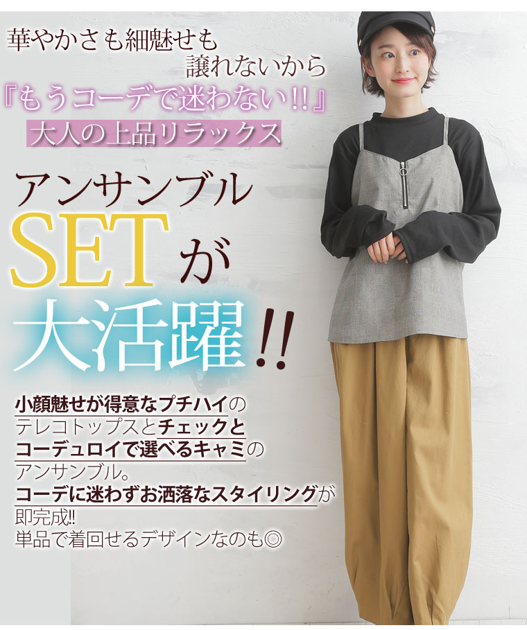 コーデュロイとチェック 選べる!キャミソールアンサンブル