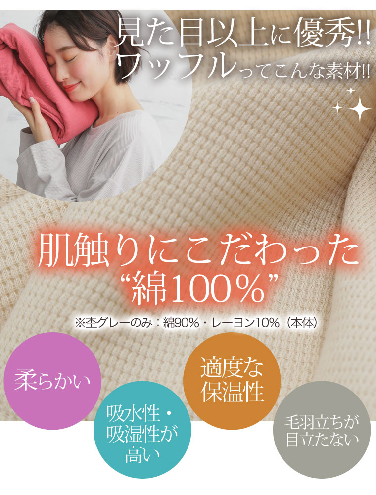 肌触りの良いコットンワッフル素材でストレスフリー♪