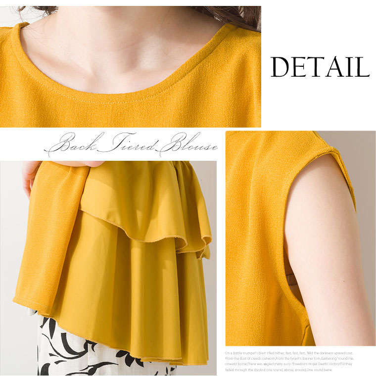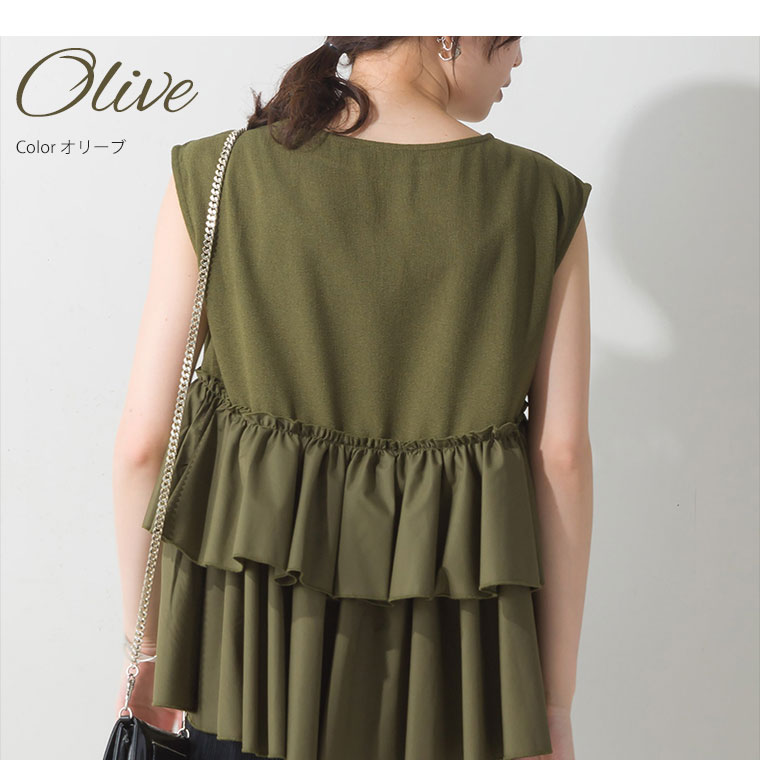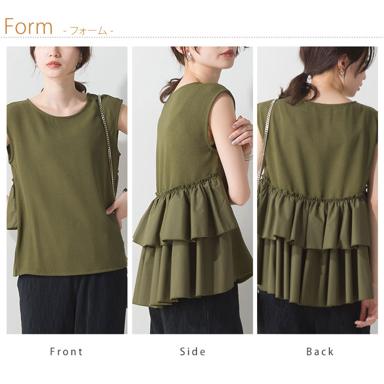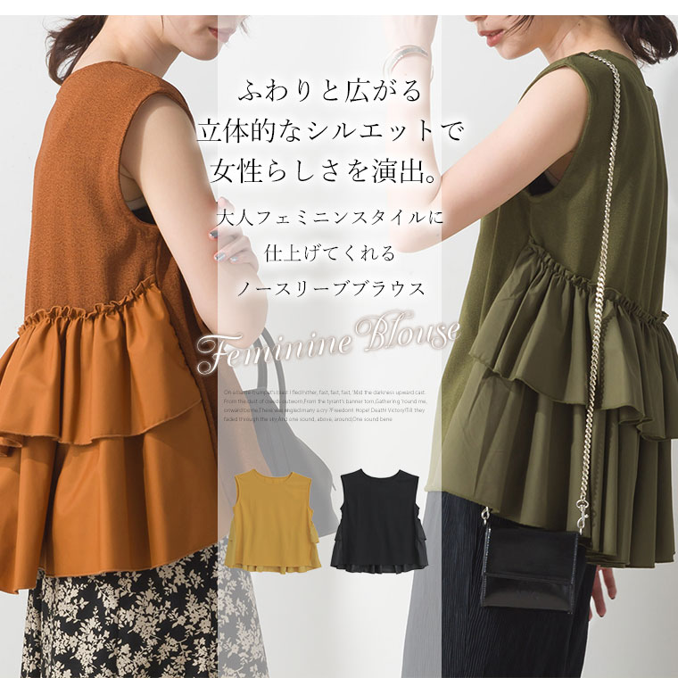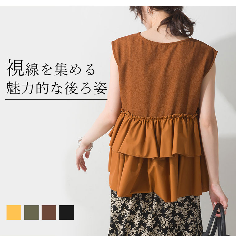 シャツ ブラウス トップス LL 3L 4L 夏 夏物 夏服 夏用 ぽっちゃり ゆったり かわいい おしゃれ カジュアル ナチュラル プラスサイズ フェミニン ガーリー バックティアード ヘム ノースリーブ