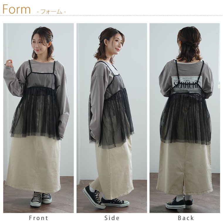 キャミソール オーバーキャミソール LL 3L 4L 5L 春 春物 春服 夏 夏物 夏服 ぽっちゃり ゆったり お腹 お尻 チュニック レイヤード かわいい おしゃれ カジュアル ナチュラル プラスサイズ ソフトチュール キャミ