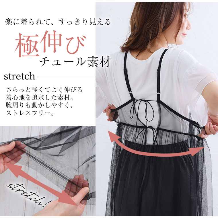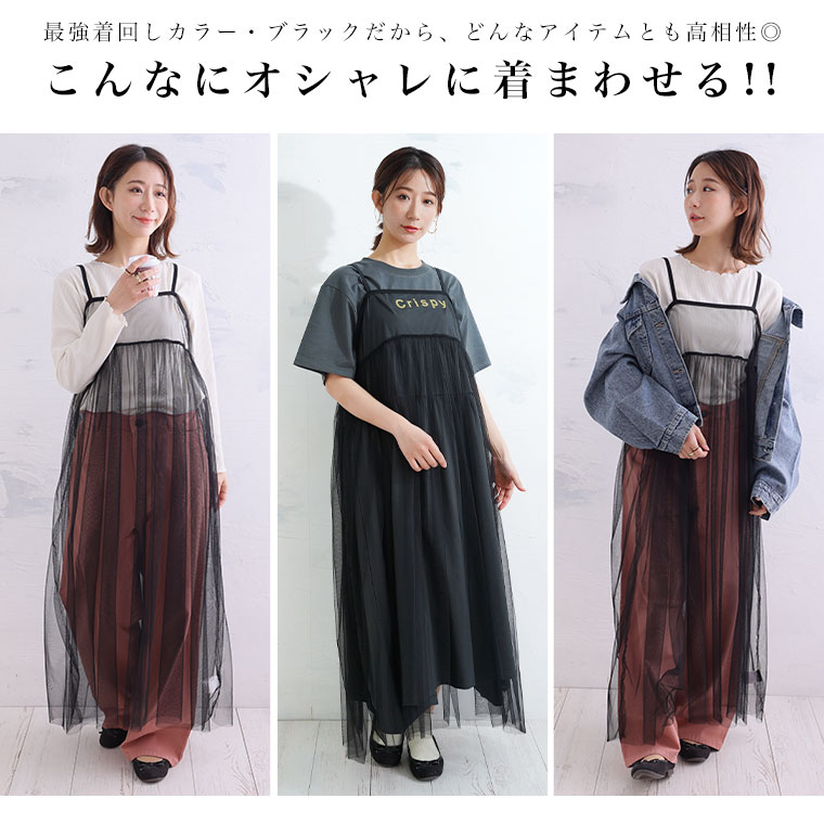 トレンドの透け感を演出できる レイヤード専用のキャミワンピ
