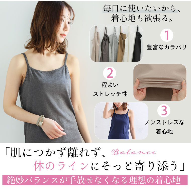 コットンフライスで着心地良く!何枚も欲しいインナーキャミソール