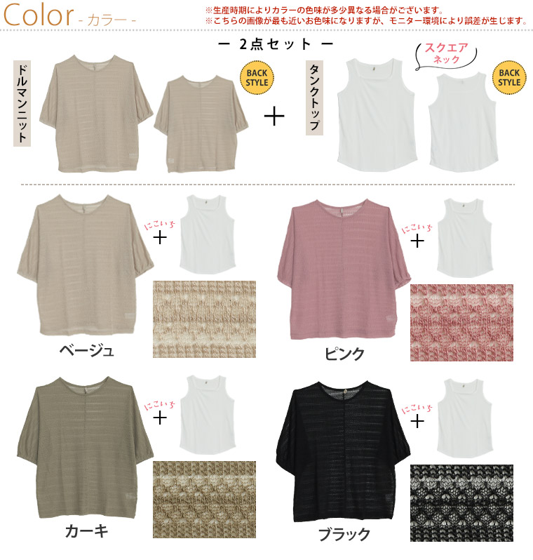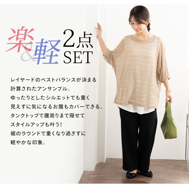 トップス タンクトップ LL 3L 4L 5L 6L 秋 秋物 秋服 冬 冬物 冬服 ぽっちゃり ゆったり レース 2点セット お腹 二の腕カバー 困った時の味方 アンサンブル ドルマン かぎ針 + タンク にこいち