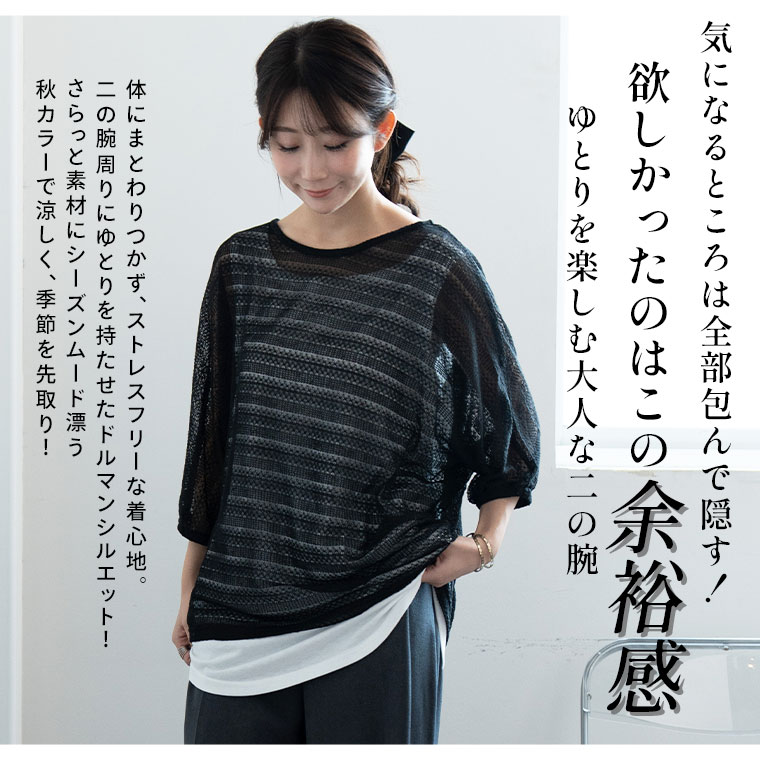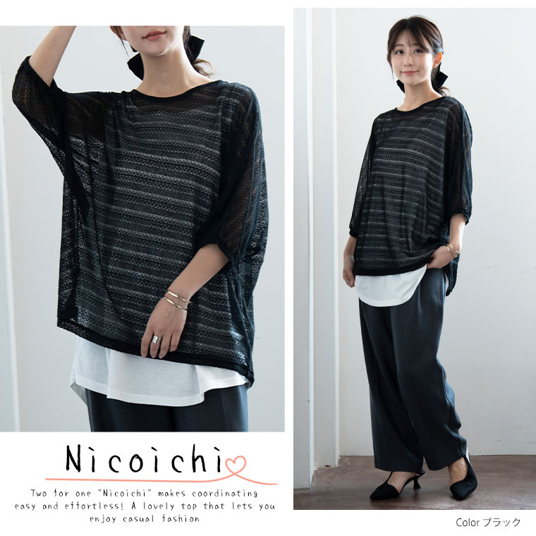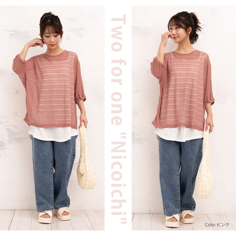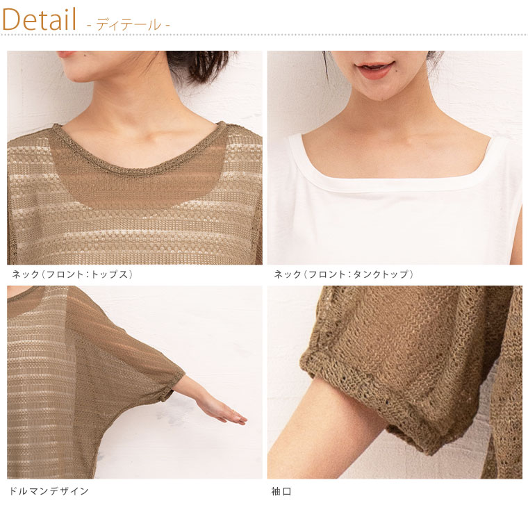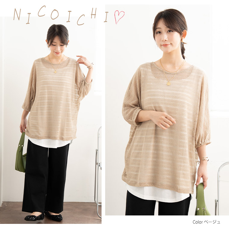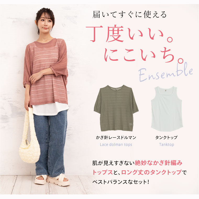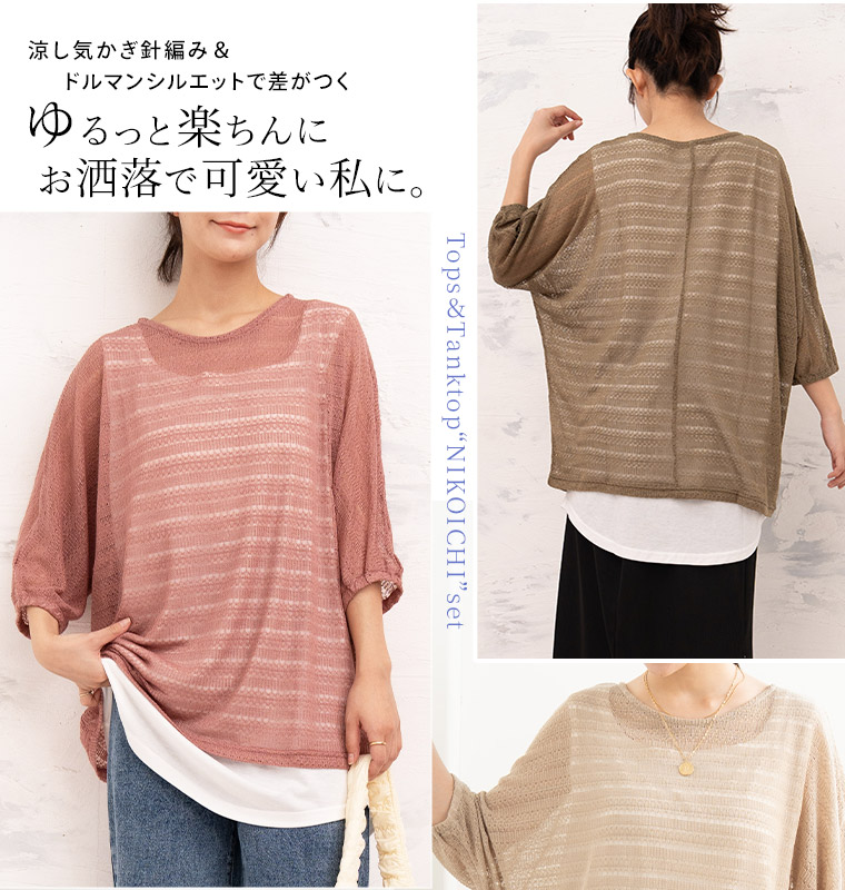 コーデに悩まない にこいち! ドルマン かぎ針ニット & タンクトップ