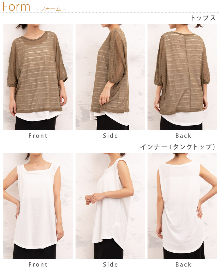 サイズ単位:cm 身丈 バスト 天幅 肩幅 アームホール 裾周り 素材/透け感