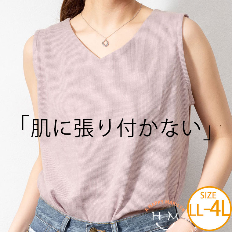 タンクトップ LL 3L 4L ノースリーブ 夏 夏物 夏服 夏用 ぽっちゃり ゆったり プラスサイズ かわいい おしゃれ カジュアル ナチュラル 【取】 Vネック ワッフル タンクトップ