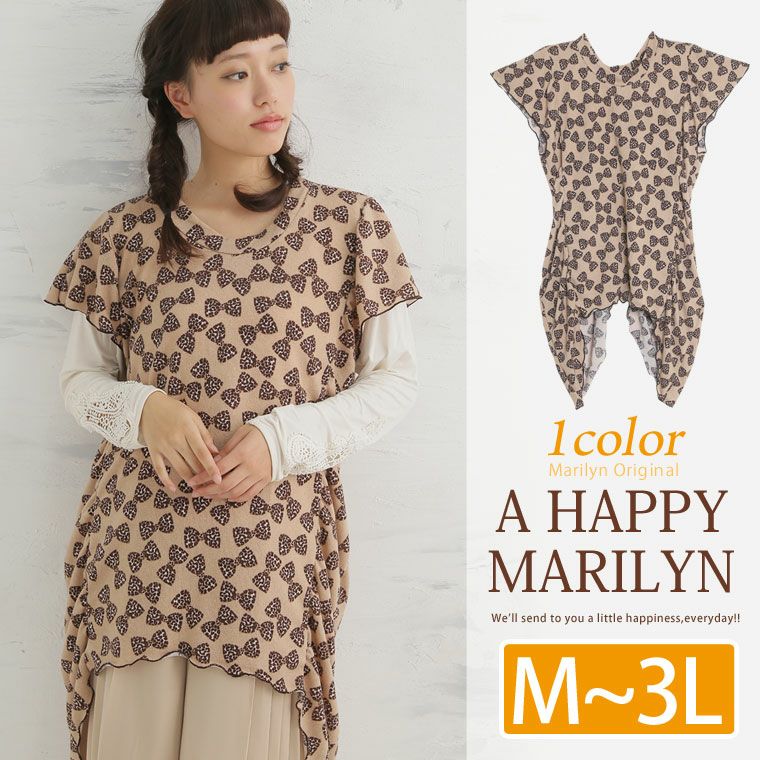ヒラリと軽やかなイレヘムデザインでふんわりカバー◎リボン柄チュニック