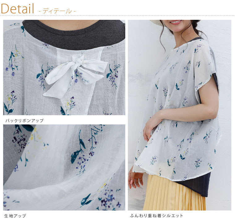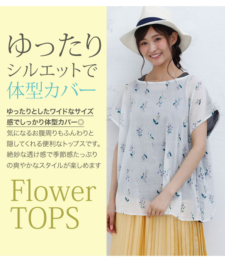 ふんわり柔らかな綿100%生地でナチュラルな着こなしに。フラワープリントトップス