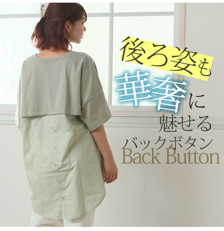 バックボタン使い天竺Tシャツ