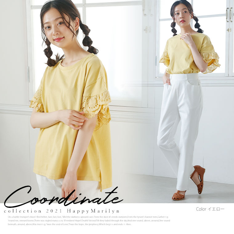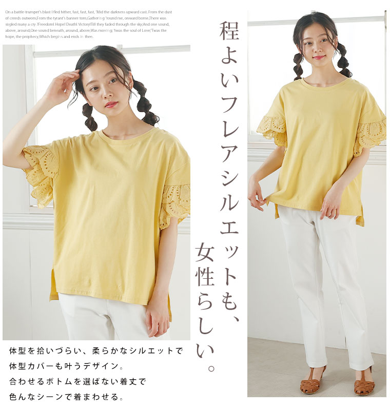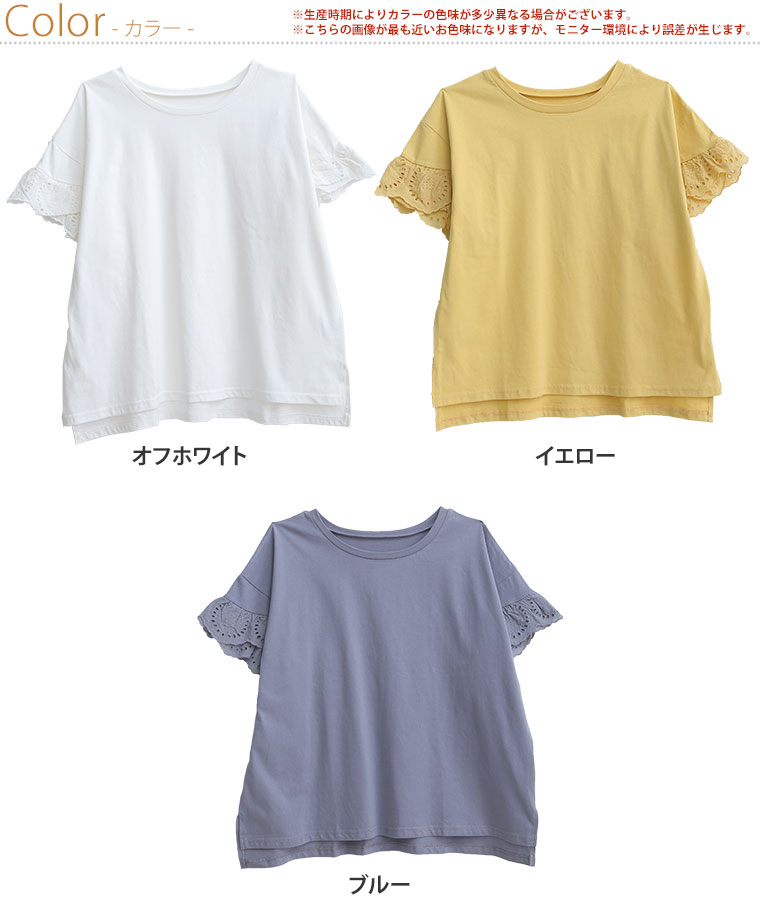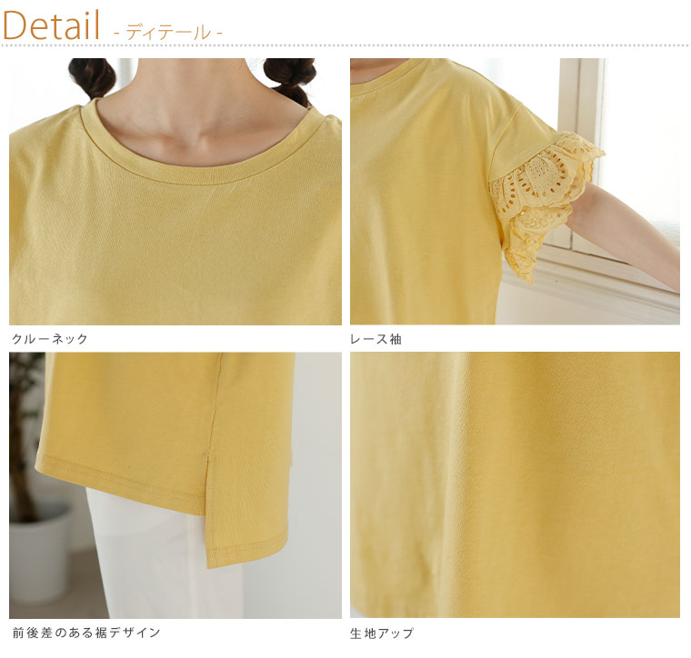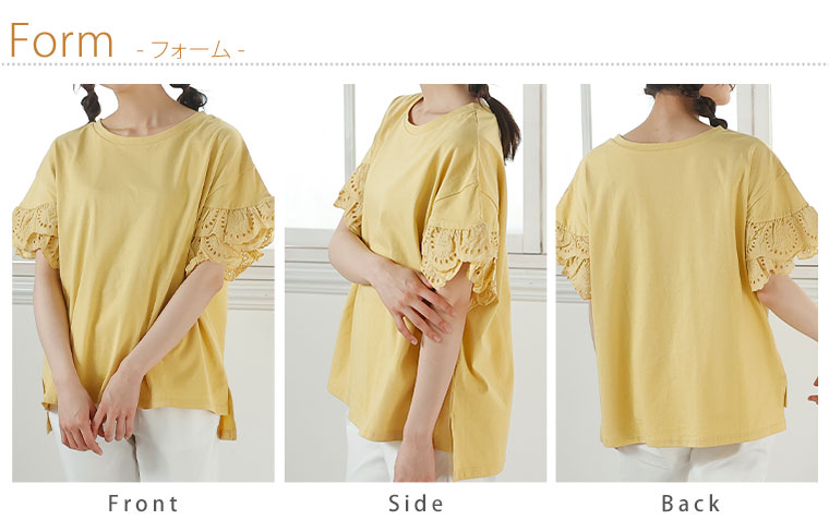 Cotton100% ナチュラルな風合いが可愛い レース袖TOPS