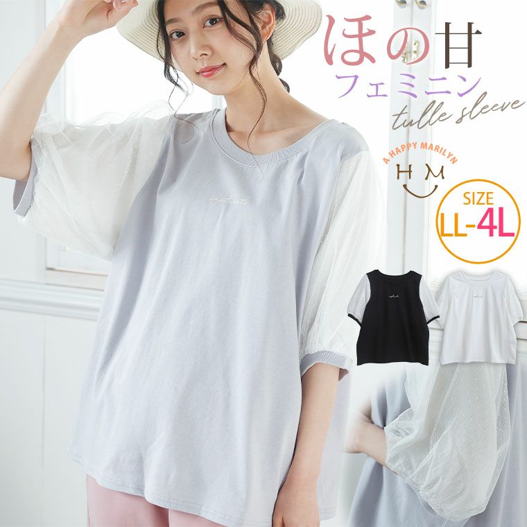 カジュアルなのにほの甘フェミニン チュールスリーブTOPS