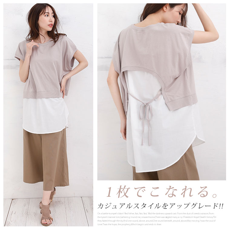ゆるっとラフ。 バックリボンが可愛いレイヤード風トップス