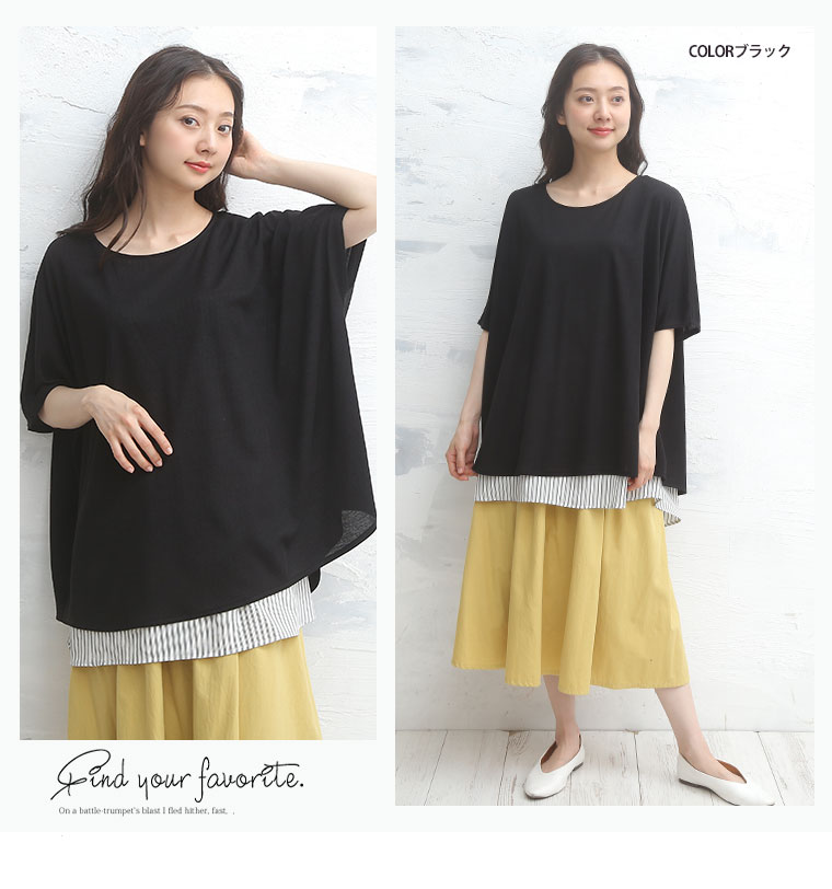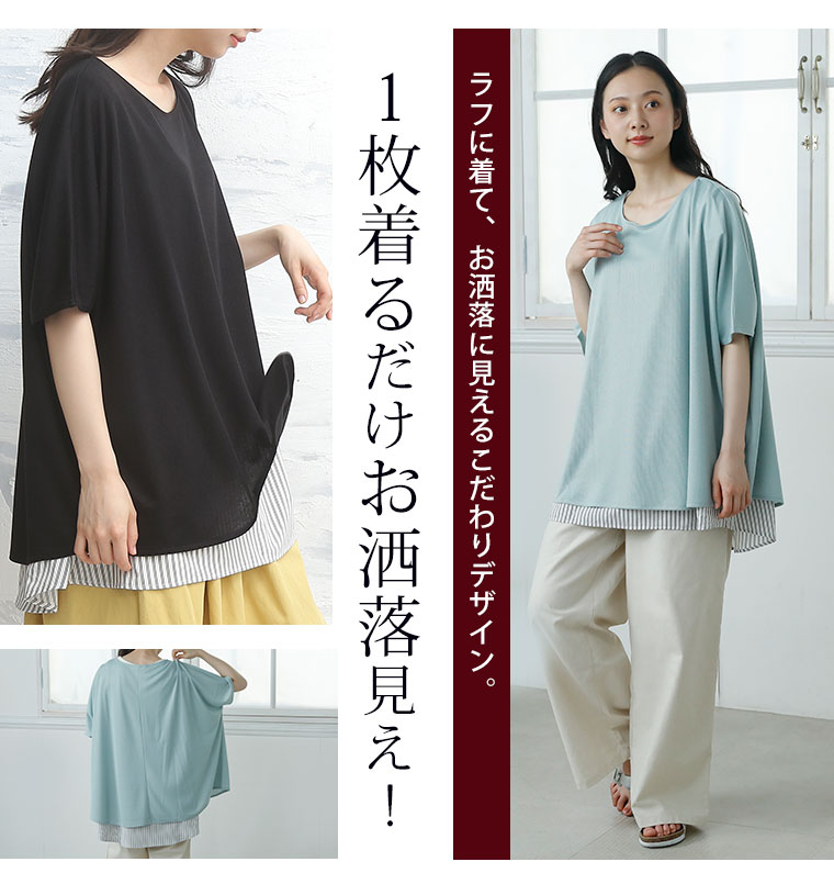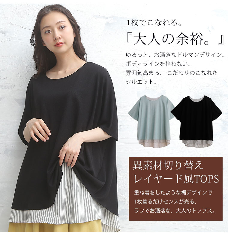 重ね着をしたような裾デザインで1枚着るだけセンスが光る。