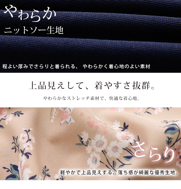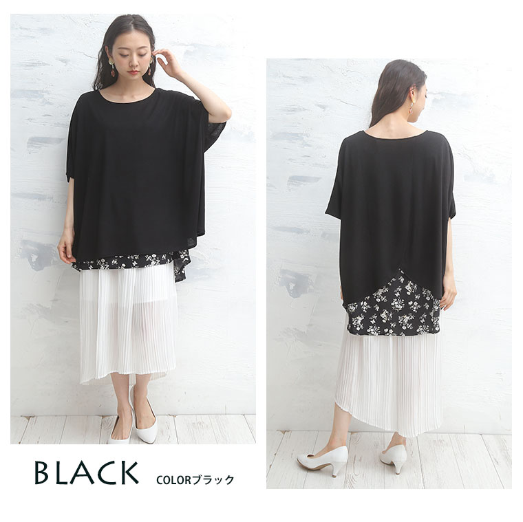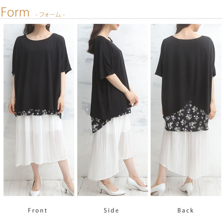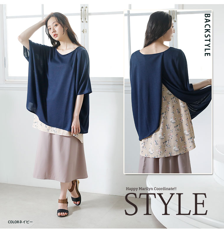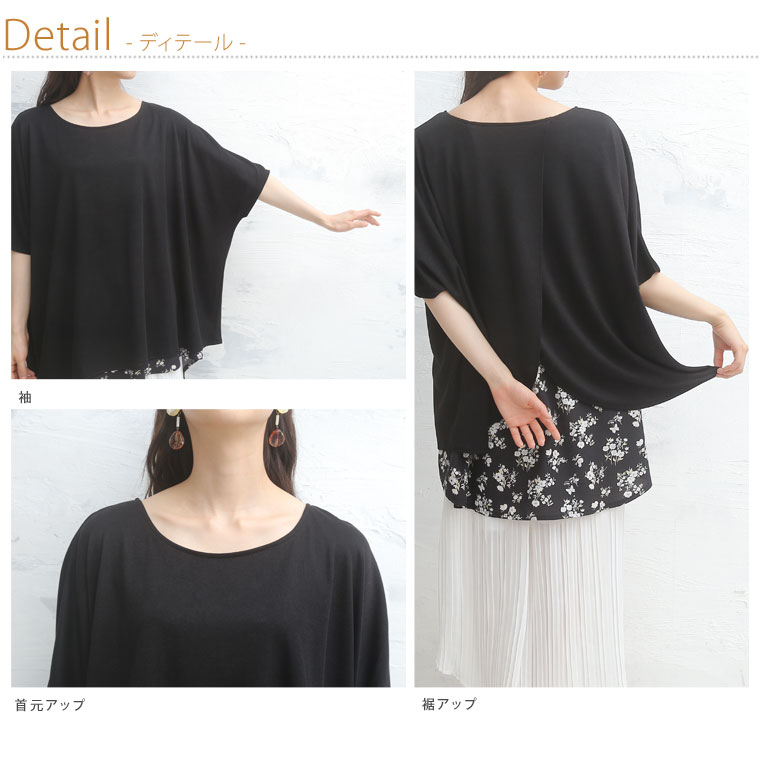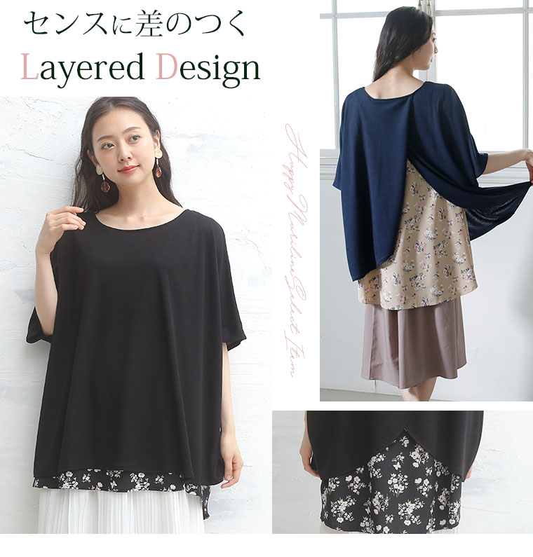 1枚で重ね着をしたようなデザインで楽してお洒落で女性らしさも光るこだわりのトップス