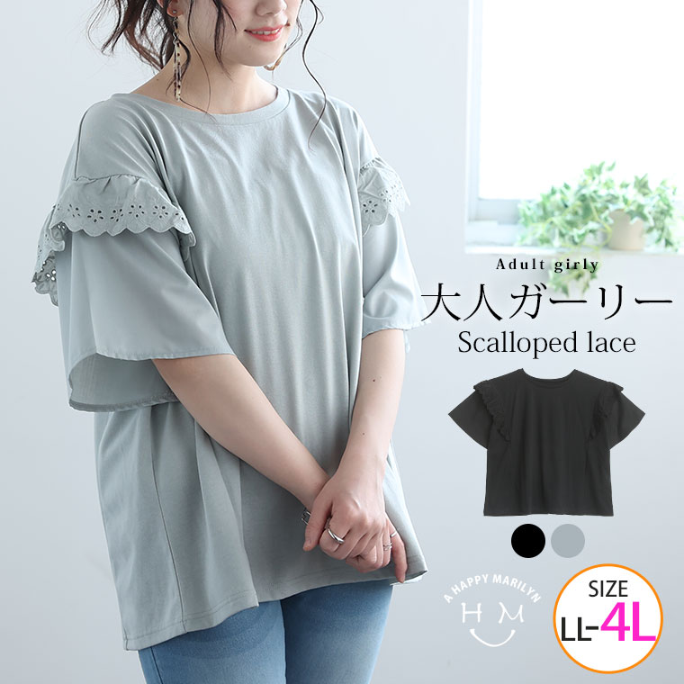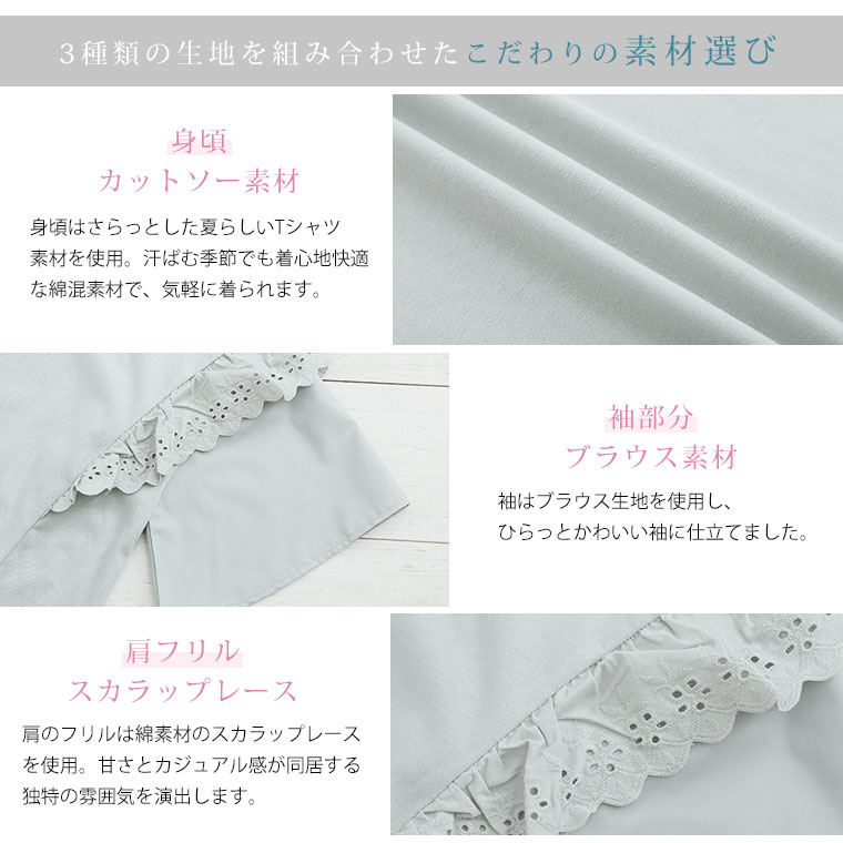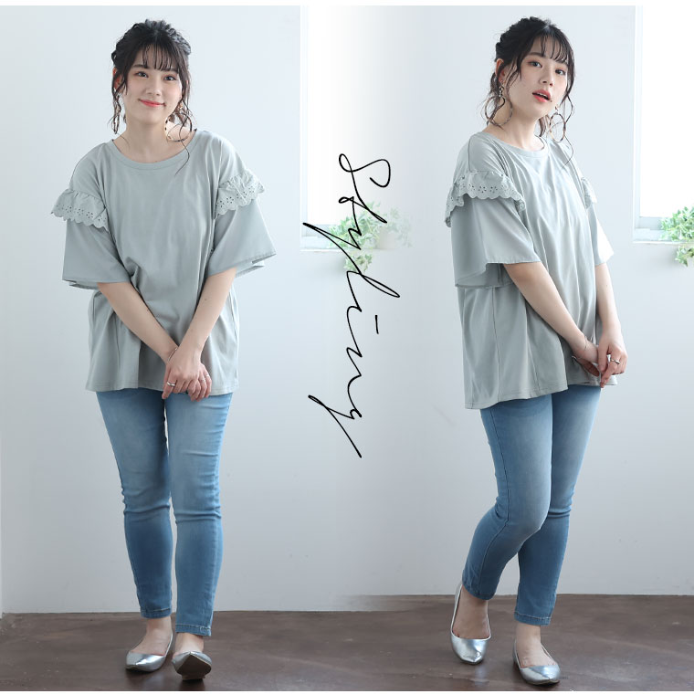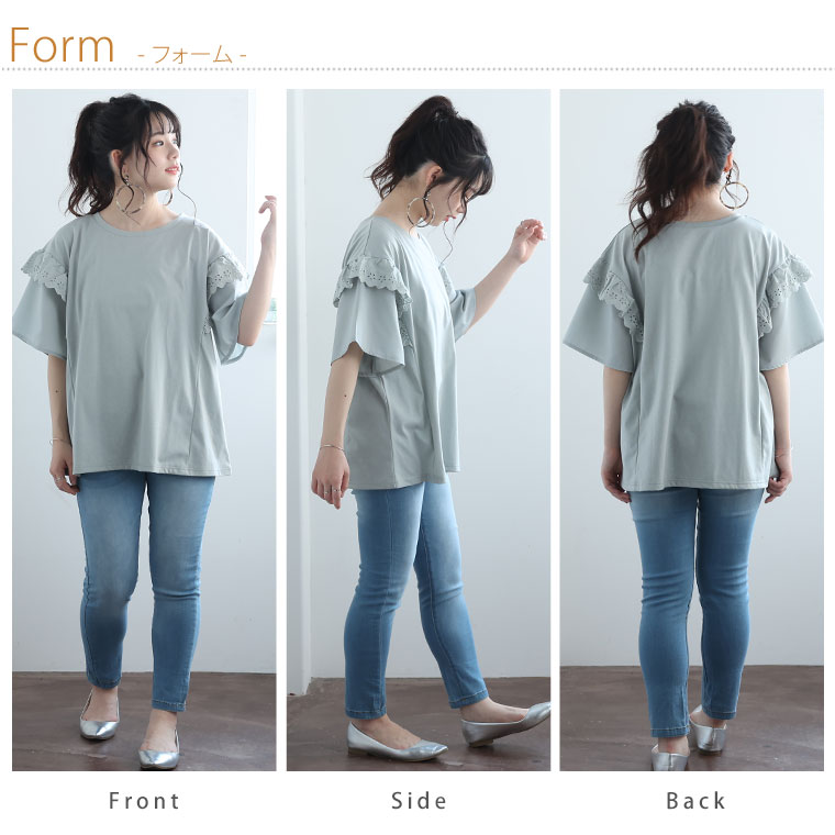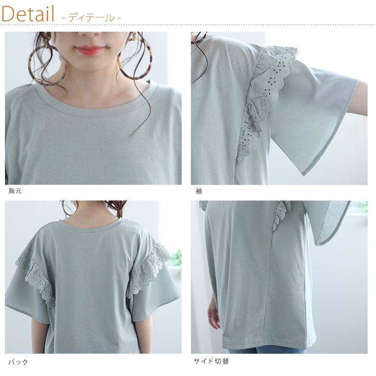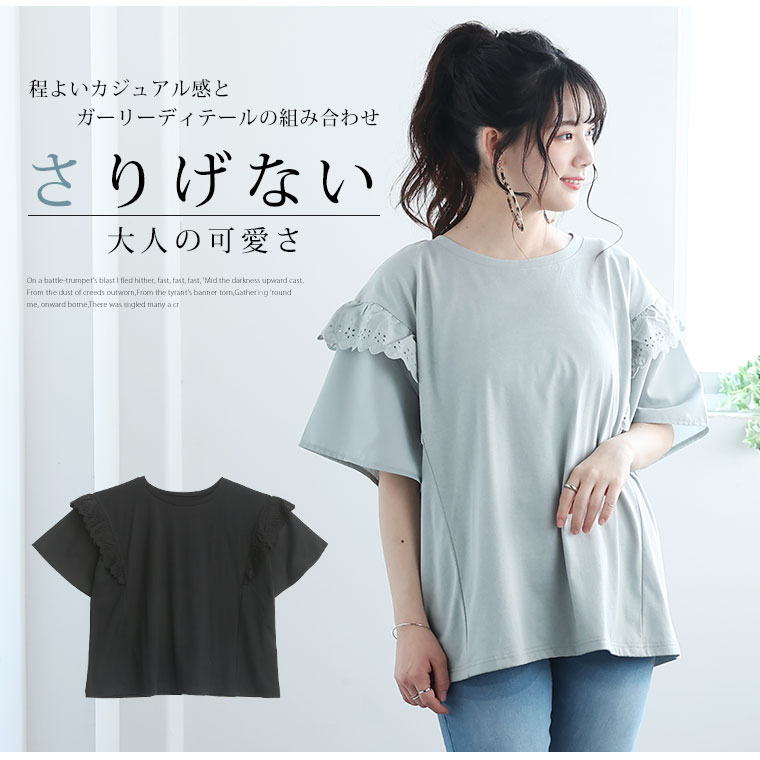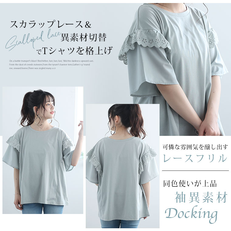 フリルレースで大人かわいいゆったりTシャツ