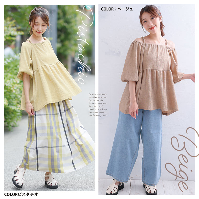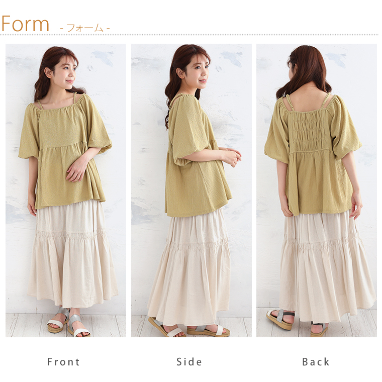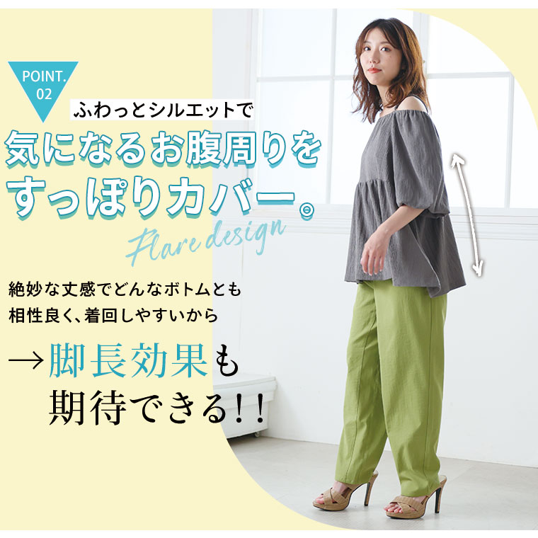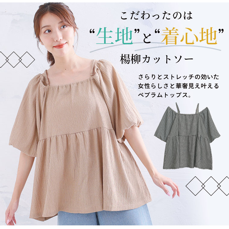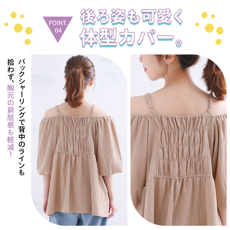 バックシャーリングで胸元の窮屈感を軽減!柳カットソー オフショル