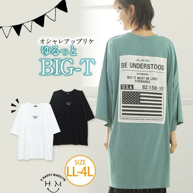 4. 大きいサイズ ゆるっとサイズがきやすい! 天竺刺繍 ツイル アップリケ カットソー Tシャツ【メール便可1】 | 大きいサイズの通販ならハッピーマリリン