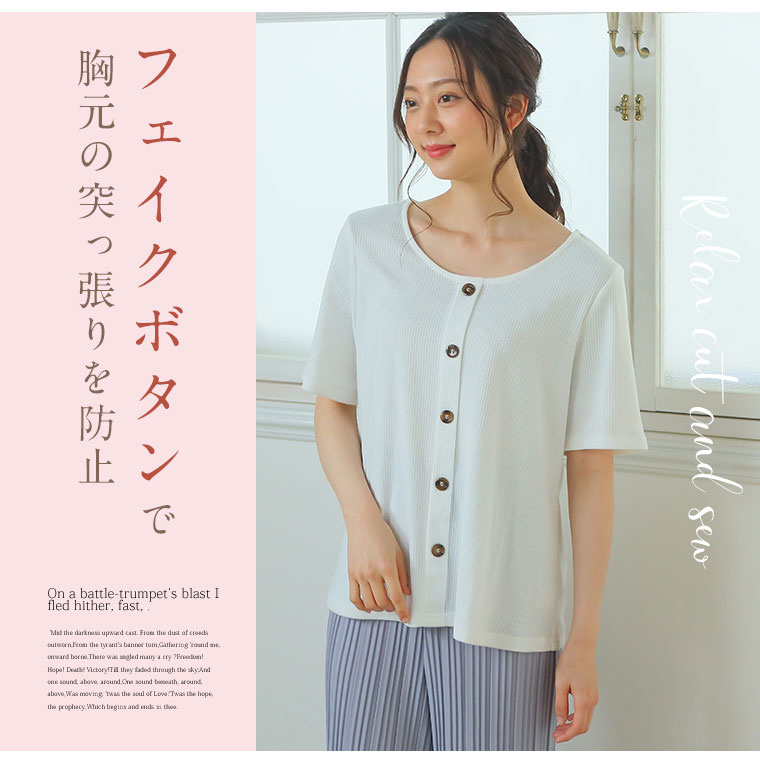 フェイクボタンでスッキリリラックス!テレコカットソー