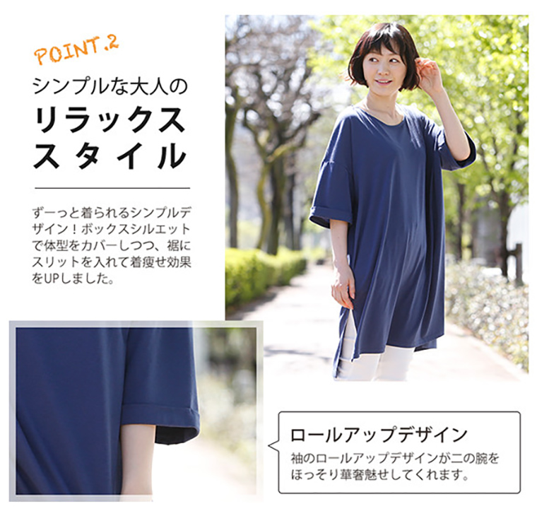 ゆったりBIGなボックスシルエットで体型カバー!六分袖Tシャツチュニック